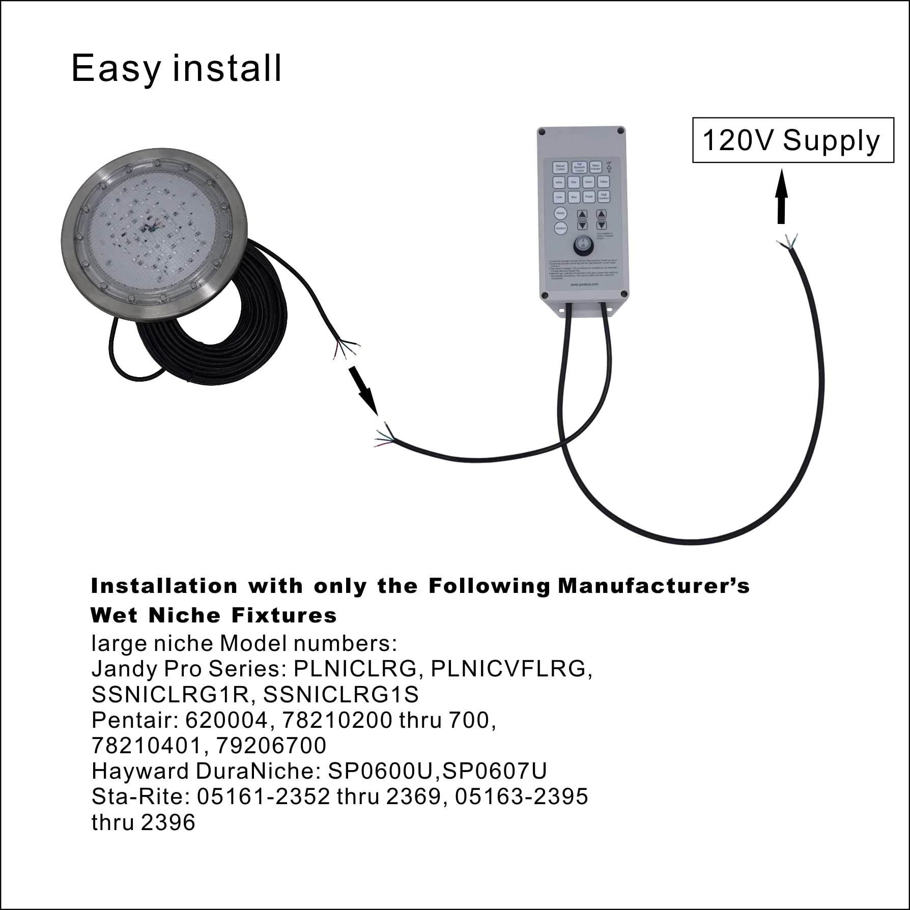 - Outdoor Control Box. 2 year warranty for light and controller.
