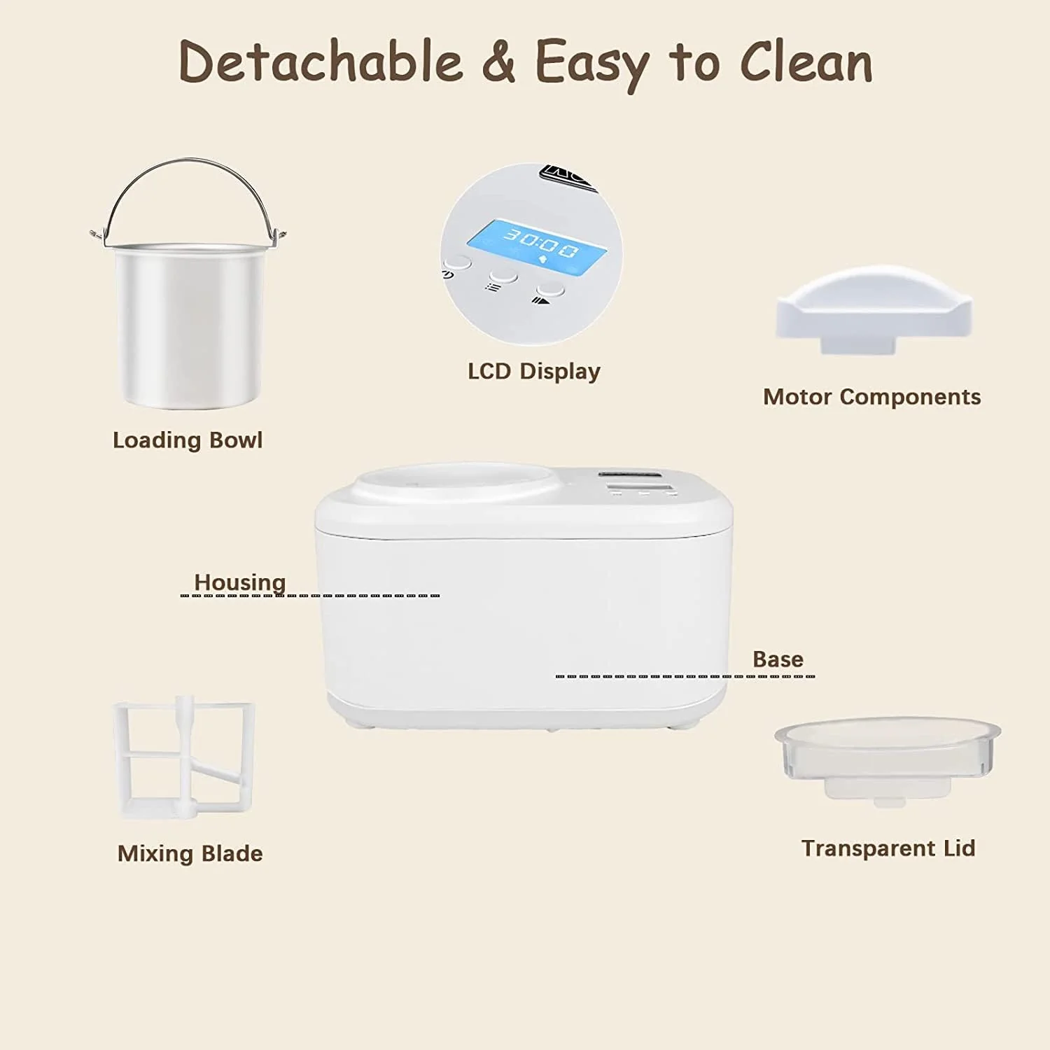 - Detachable & Compact- Easily clean up the dessert maker with the removable bowl. paddles. cover. and plastic housing. The Gelato maker is applicable to multiple places with a size of 13.9'' x 10.2'' x 8.9''. also easy to store and fits any countertop.