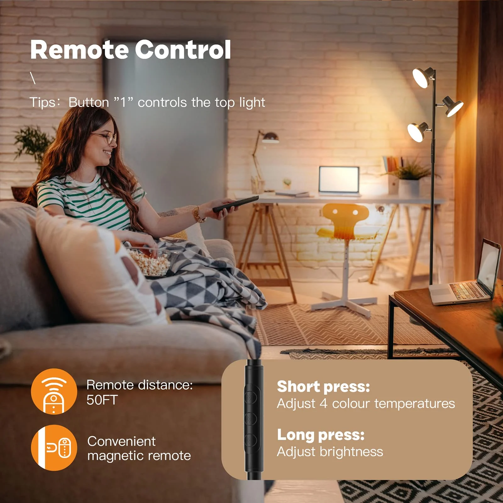 - Remote Control & Individual Switch -- Remote and touch control both can turn the standing lamp on and off. and adjust the brightness or color temperature as you wish. You can turn off the light and go to sleep without getting up. At the same time. it is compatible with smart plugs and wall switches in your home for voice and APP controlled switching.Each light can be turned on or off individually. You can turn on all the lights for bright lighting or turn off 1-2 lights for reading or bedtime.