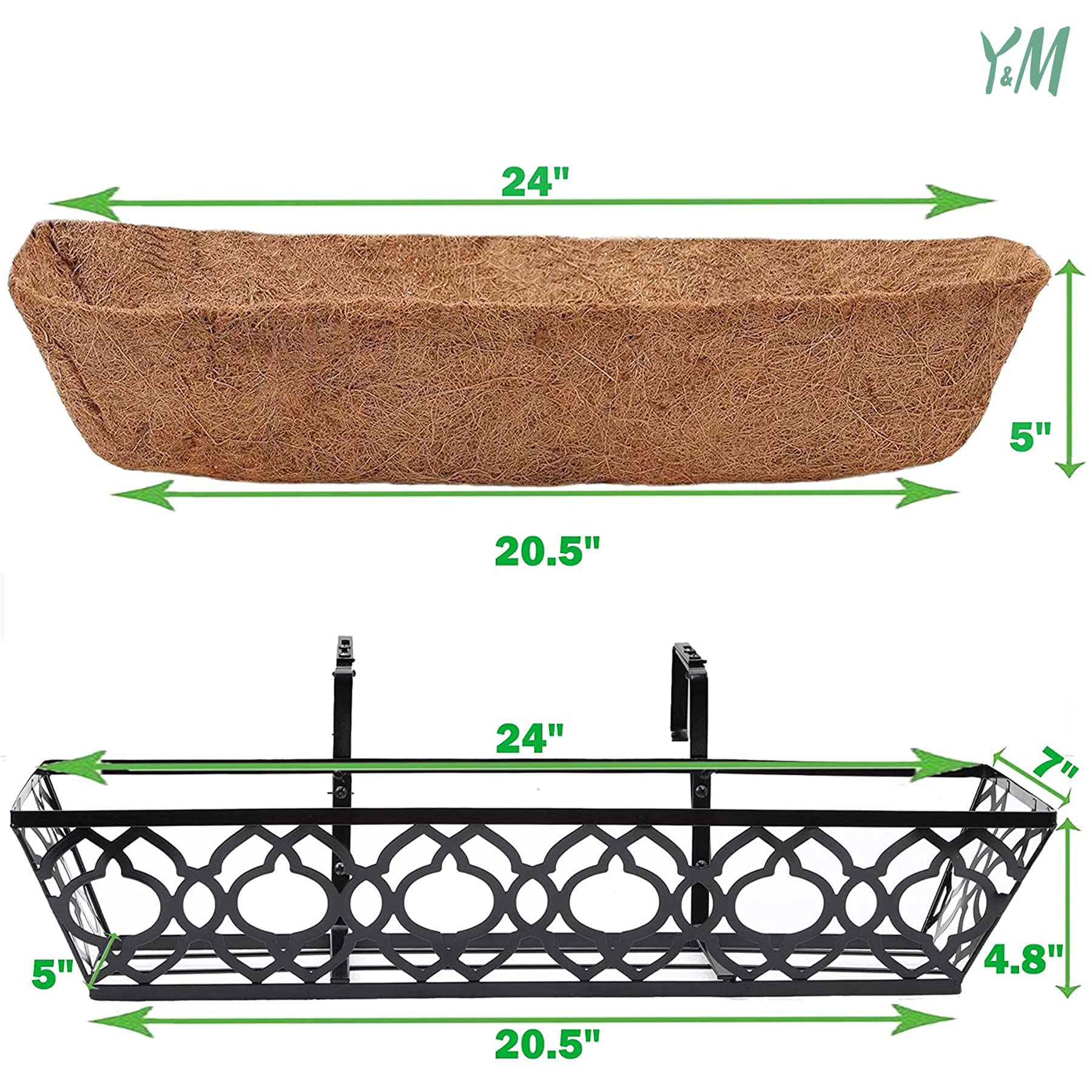 - 4pcs 24 inch Window Deck with Coco Liner Indoor Outdoor Window Boxes Horse Trough to display plants and flowers on deck railings.
