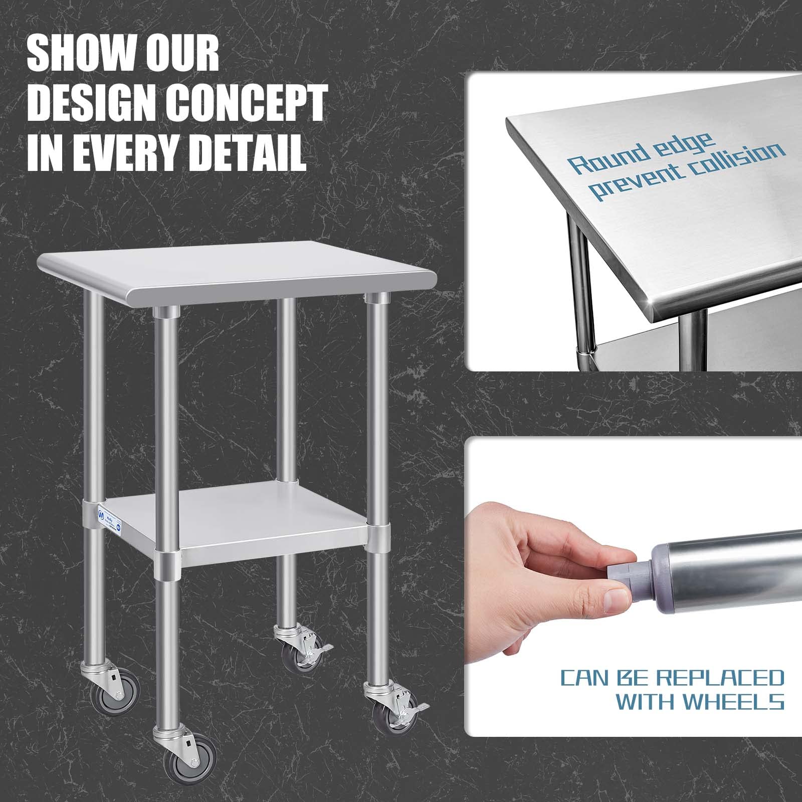 • Hally Stainless Steel Table for Prep & Work 24 x 18 Inches