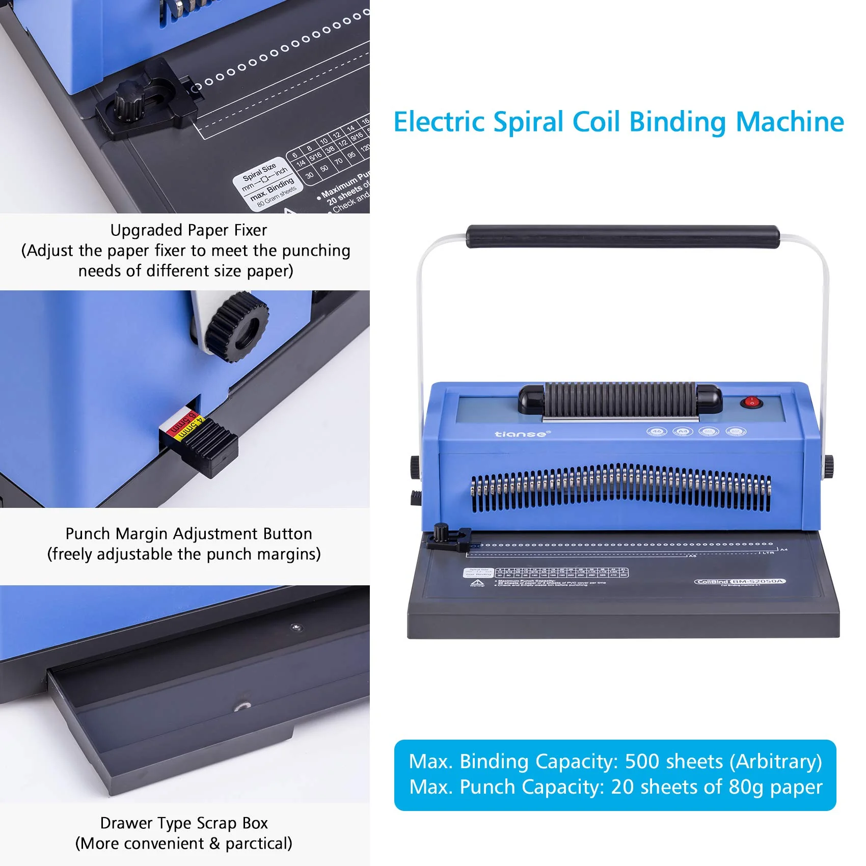 - ��Easy to Use & Labor-saving�� Electric Coil Inserter. hands free opporation. Create professional-looking bound books at home or in the office quickly and easily. The spiral coil binding machine electronically inserts plastic coils for faster binding. saves time and effort for large workloads.