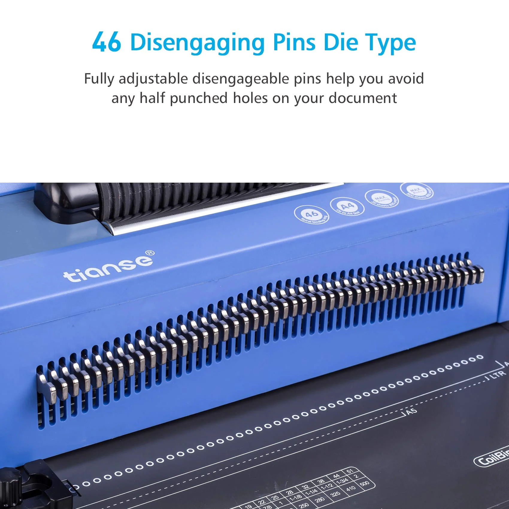 - ��Margin Adjustments Design��TIANSE coil binding machine is suitable for Letter Size (42 holes). A4 Size (46 holes). A5 Size (33 holes). With adjustable side and edge guide. this machine also ensures a precise alignment with each document your bind. and you can easily customize the paper margin: 2.5mm. 4.5mm. 6.5mm to create professional-looking works.