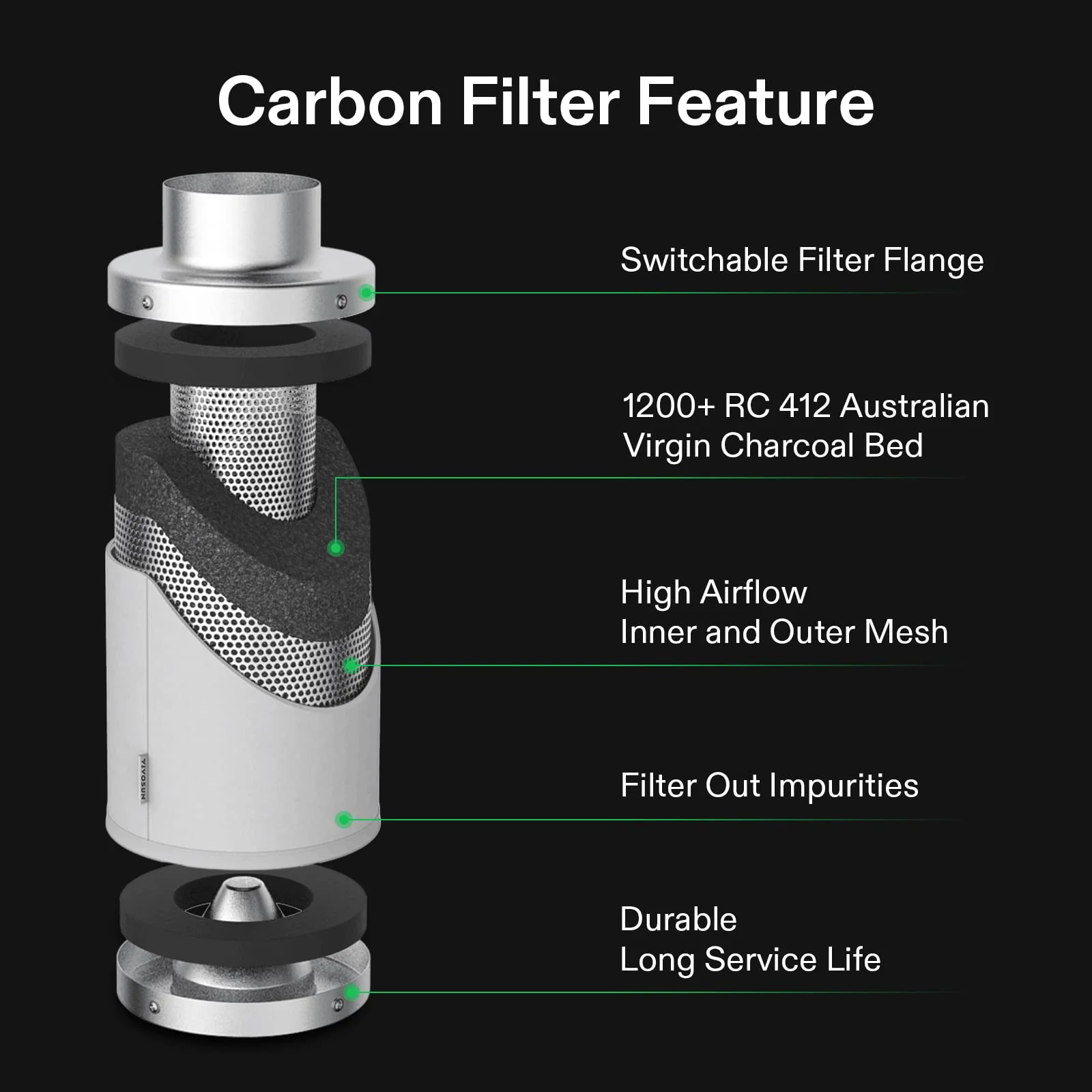 - Excellent Odor Control: The porous activated carbon with 1200+ RC 412 Australia Virgin Charcoal helps eliminate some of the most undesirable. pungent smells and particulates for indoor grow tents