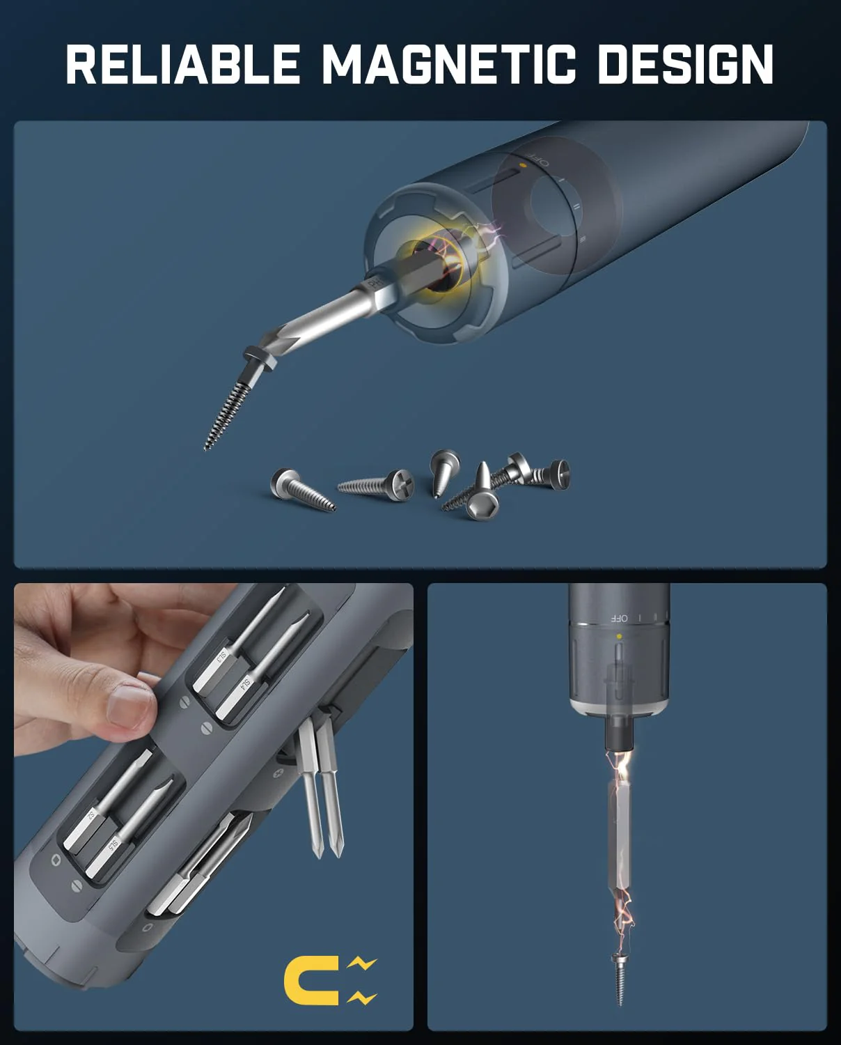 - ��What's in the Box��1x Powerful Electric Screwdriver. 1x Storage Case. 16x Precision Bits (see the picture for all bits). USB Type-C Charging Cable. 1x User Manual.