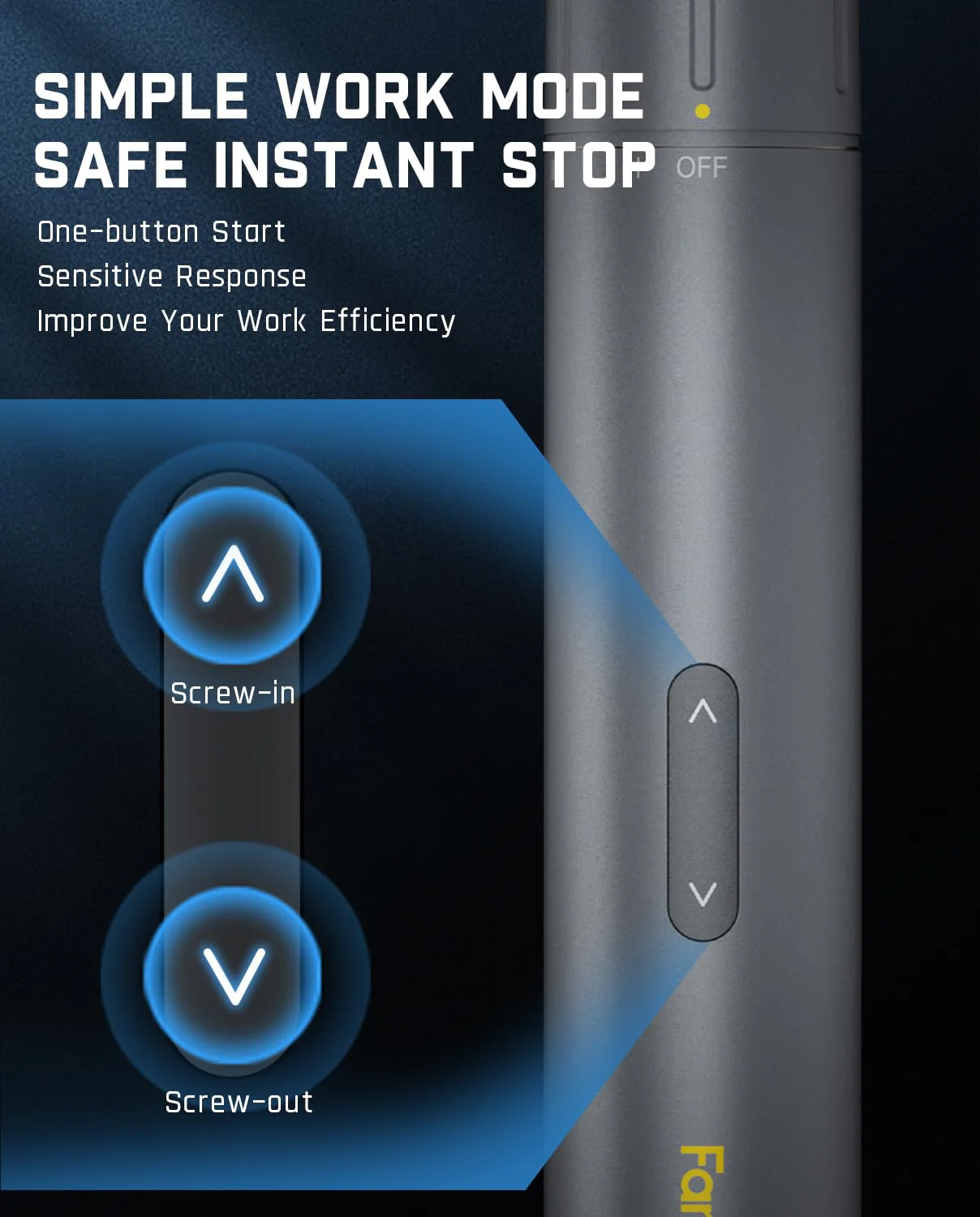 - ��Top-Notch Performance��Equipped with a 3 torque level of 1.5/3/4.2N.m and max hard torque of 6N.m. as well as a manual torque of 8N.m. Immediate stop the moment the finger lifts up. work smart not hard. This powerful electric screwdriver offers accurate torque forces for your handy work needs. Ideal for assembly and repair of furniture. air conditioner. faucet. socket board. desktop computer. etc.