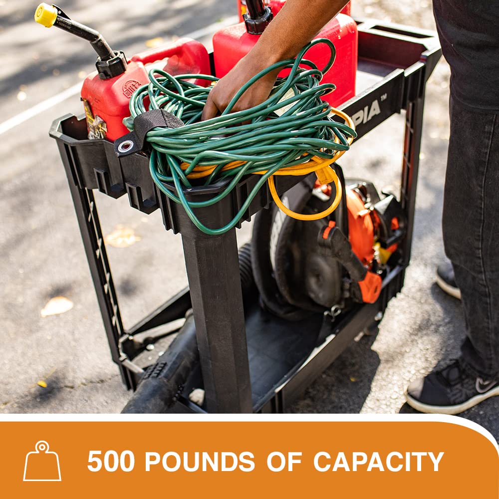 - A PERFECT CHOICE FOR THE HEAVY WORKS - Our HEAVY DUTY carts with wheels are perfect for transporting materials. supplies. and heavy loads in almost any environment. Offering 500 pounds of storage weight capacity. 250 pounds for each shelf. Our HEAVY DUTY work cart is a great choice for you!