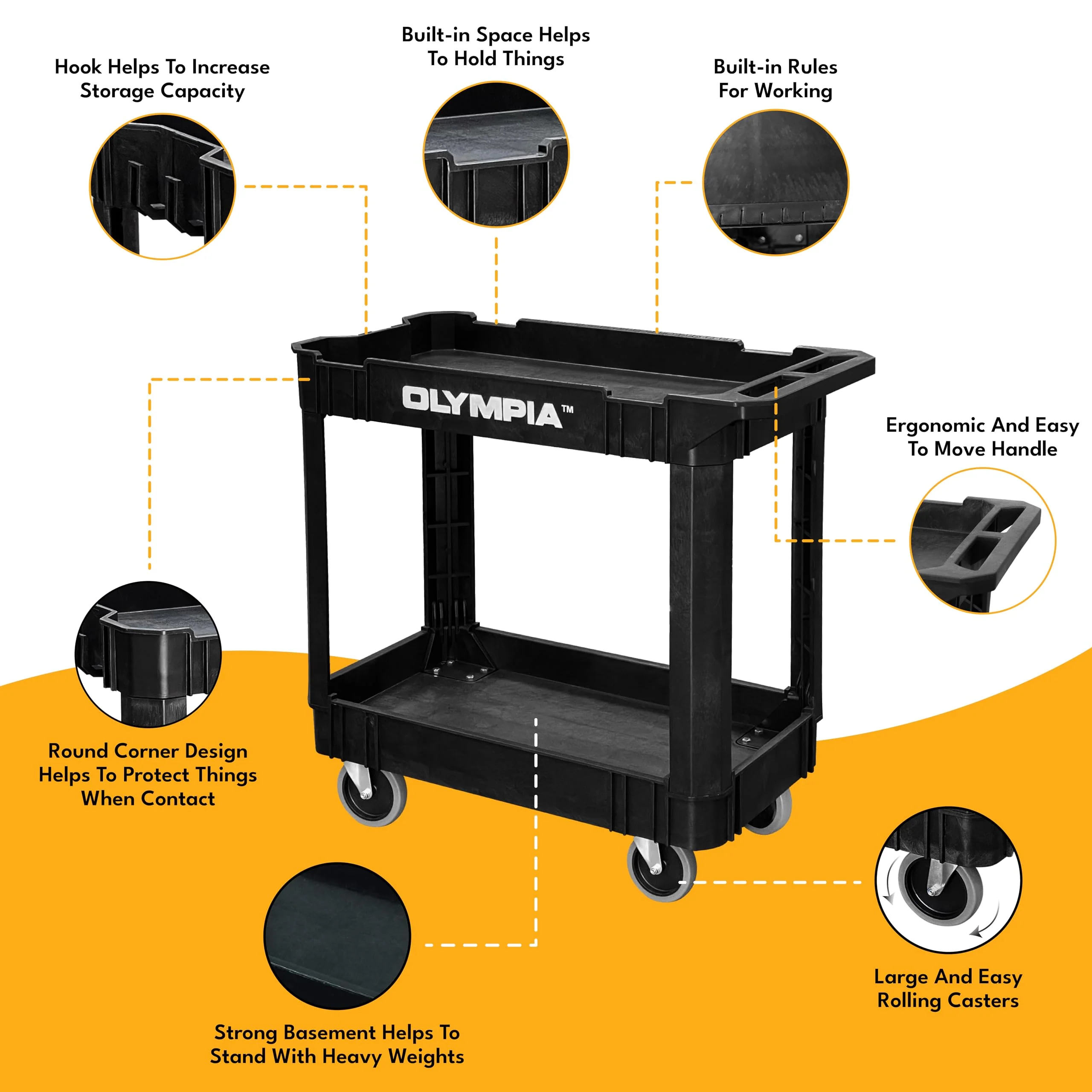 - WE WANT TO BRING YOU A HIGH-QUALITY UTILITY CART - By using an advanced material construction with high-density plastic injection makes this large rolling utility cart is sturdy. lightweight. and maneuverable; it also won't rust. dent. chip. or peel. Rounded corners protect walls and furniture