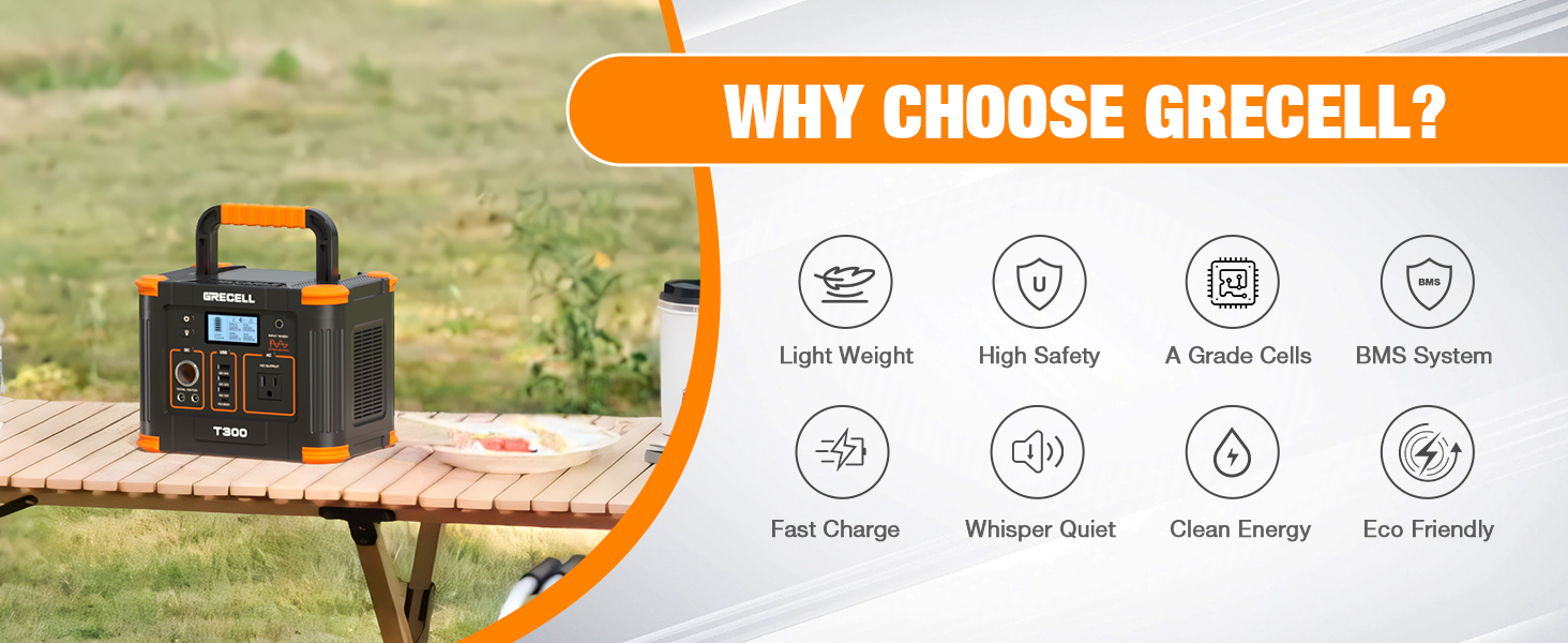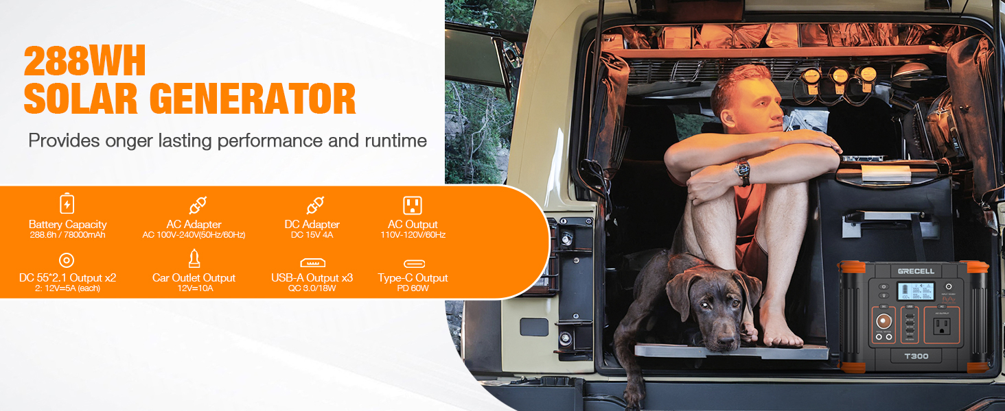- ��Power 8 Device simultaneously��Equipped with 1*AC output. 1*USB-C PD 60W output. 3*USB-A QC3.0 18W outputs. 1*Car port. 2*DC outputs. GRECELL solar generator can power eight devices at the same time (as long as they draw less than 330W combined). Each switch can control each output module.