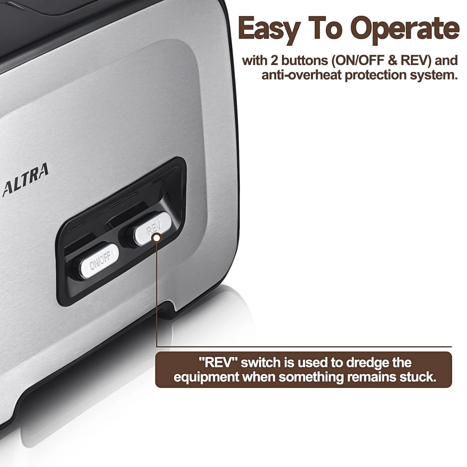 - EASY AND SAFETY OPERATION: Design with 2 buttons (on/off and reverse) and a circuit breaker. In case of jamming. you can press the REV button to unclog it. In case of overheating. it will automatically be stopped to avoid motor burnout.