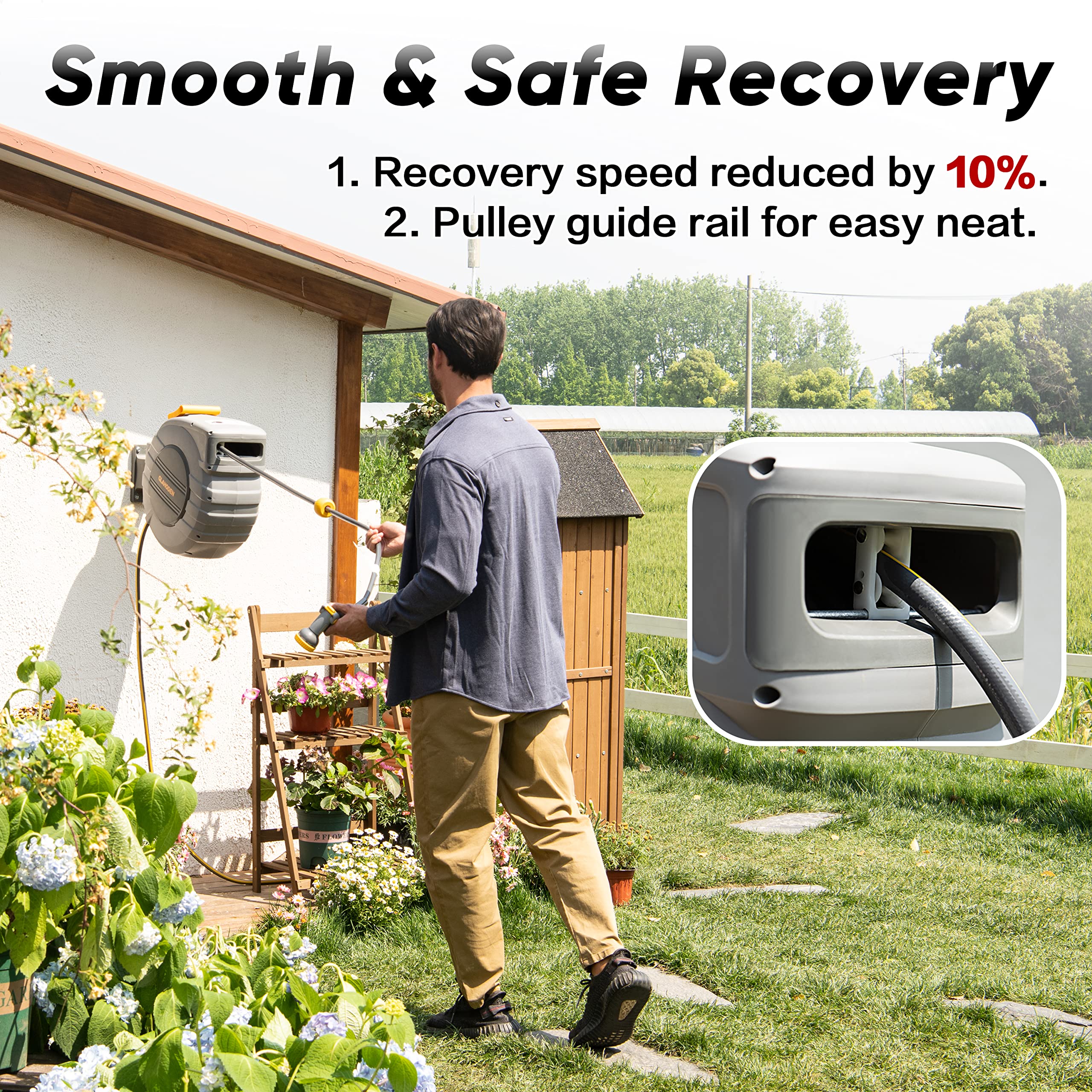 - ?????????????????? ???????????????????? ???????????????? - The auto rewind water hose reel has a retractable lifespan of up to 20.000 cycles. providing stronger tension. The retraction speed is reduced by 10%. ensuring safer usage.