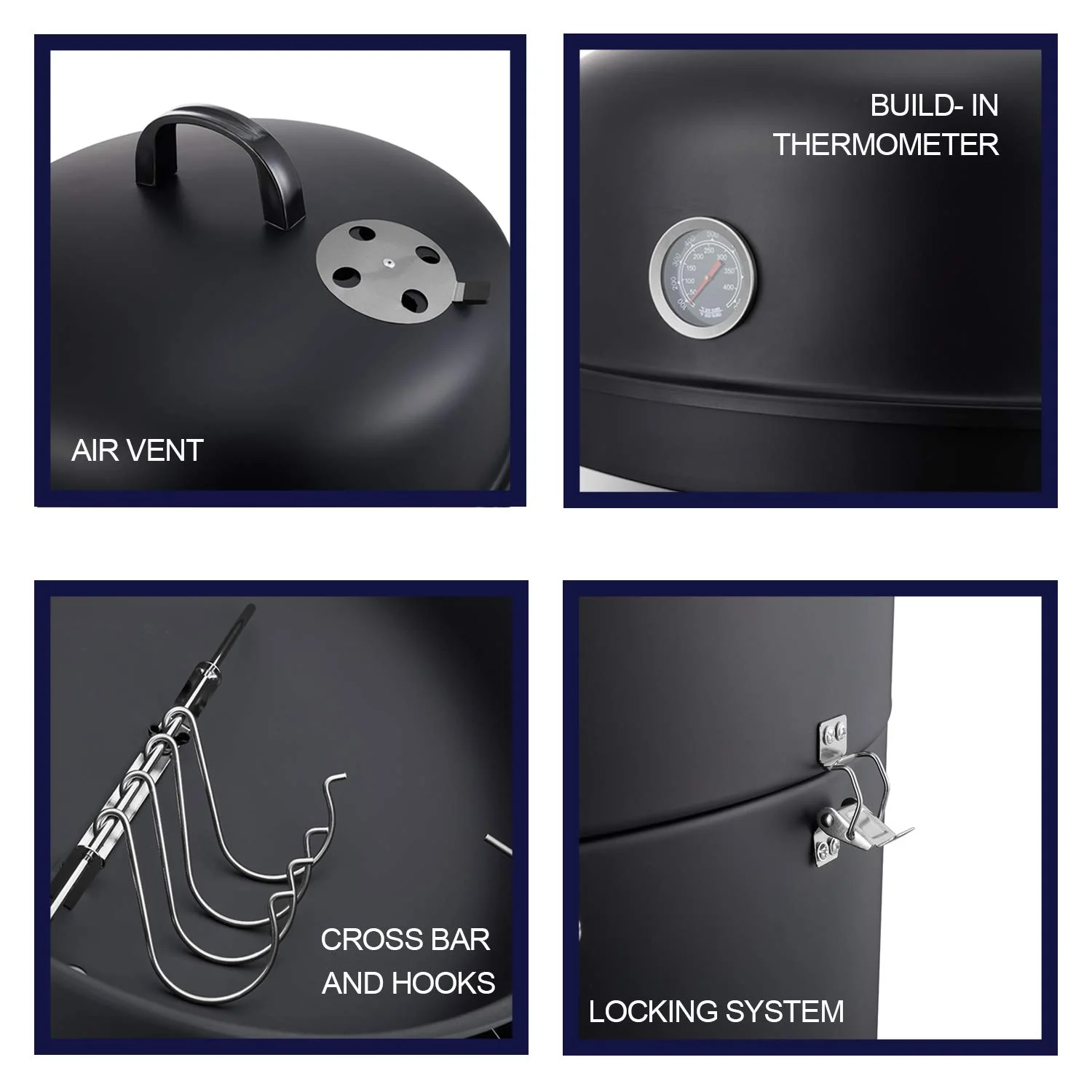 • ��COOKING SPACE�� - 2 pieces cooking grids provide total 453 square inches cooking space. With crossbar and 4 hangers inside the lid. you can smoke different sizes and shapes of meat.