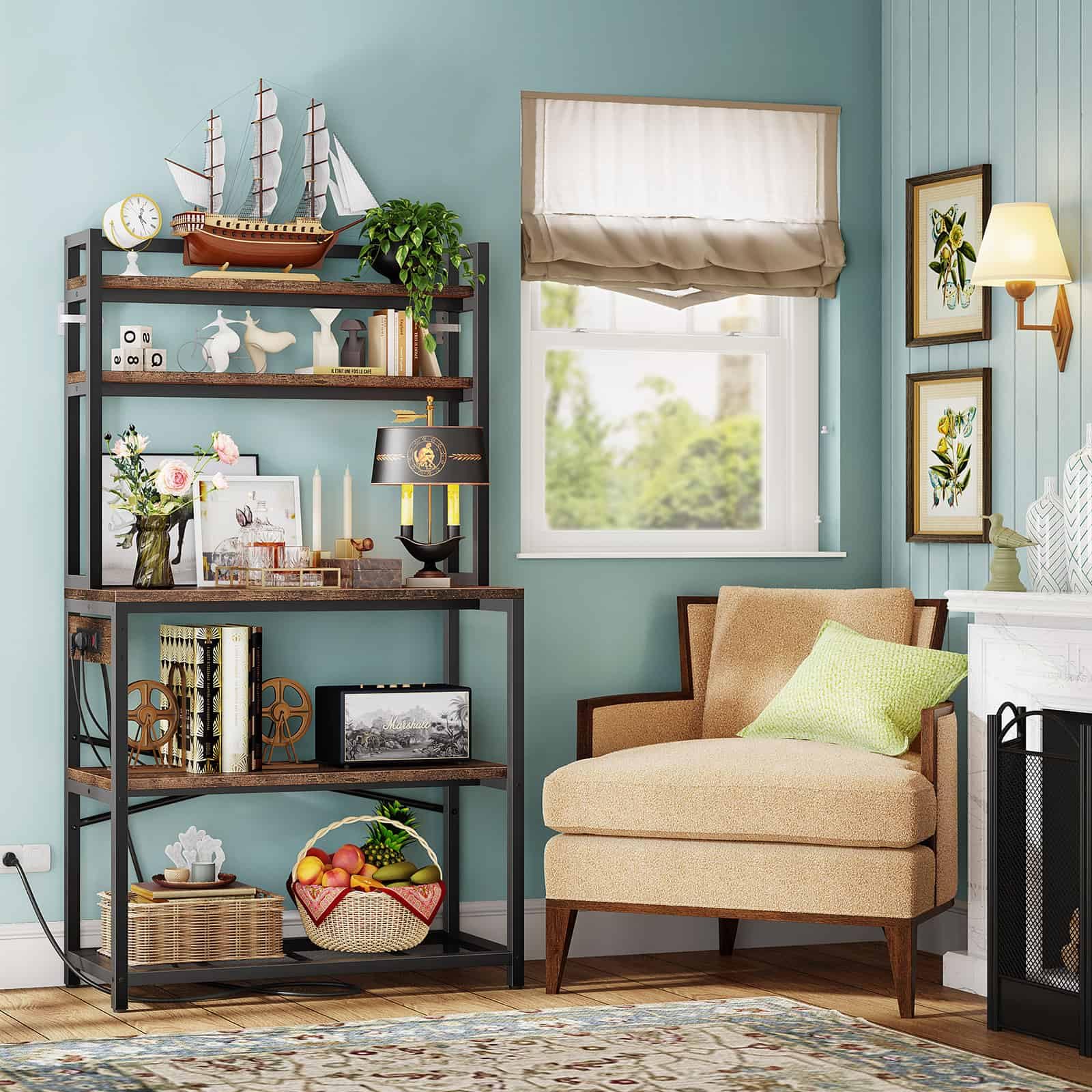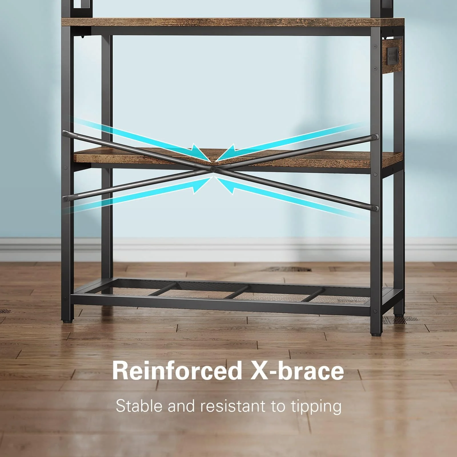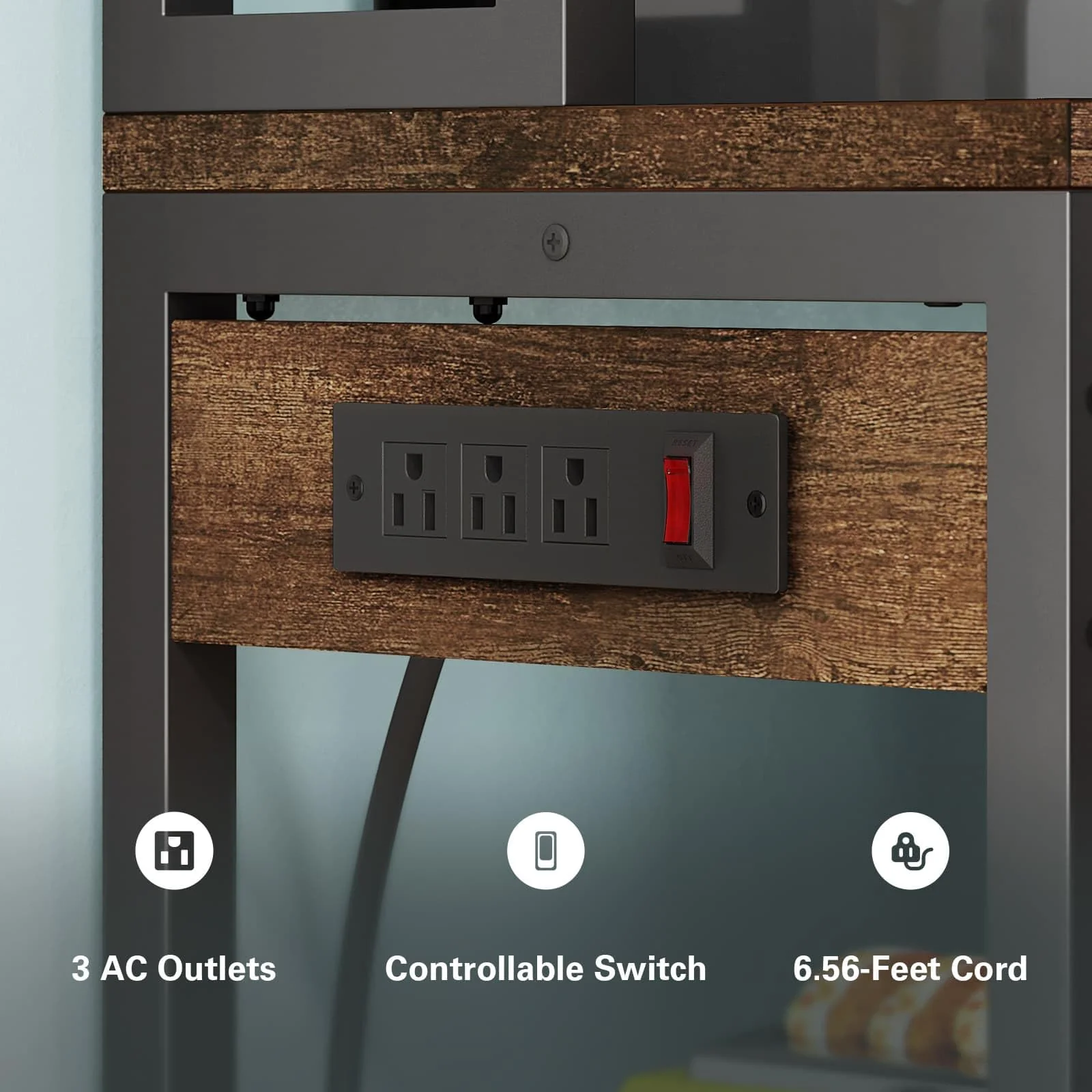 - ��Convenient 3 Power Outlets��: Our bakers racks for kitchens with storage not only come with 3 AC outlets and 6.56 feet of cord to power multiple appliances at once without having to move any of them. but also come with a safety switch to ensure electrical safety.