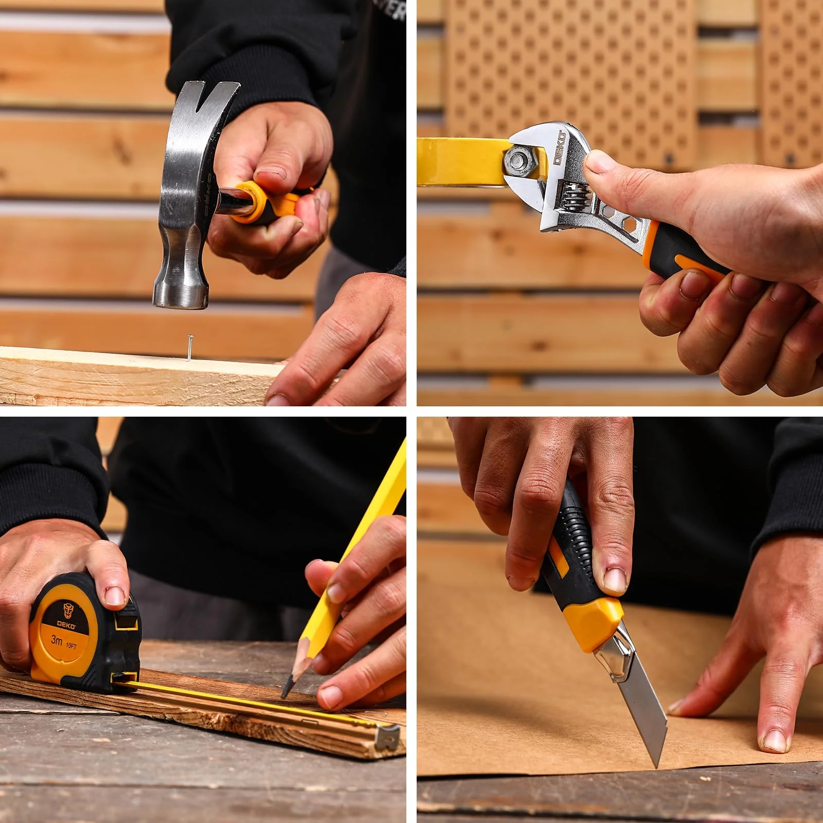 - ��ALL TOOLS IN ONE TOOLBOX��This household tools kit contains the most useful and necessary tools in one box storage as the origanizer of tools sets: 20V battery power drill set and combo kit. screwdrivers. saw. hex key. bits. sockets. drive spinner handle. tape measure. claw hammer. hammer cap. adjustable wrench. level. pliers set and plastic toolkit case etc.