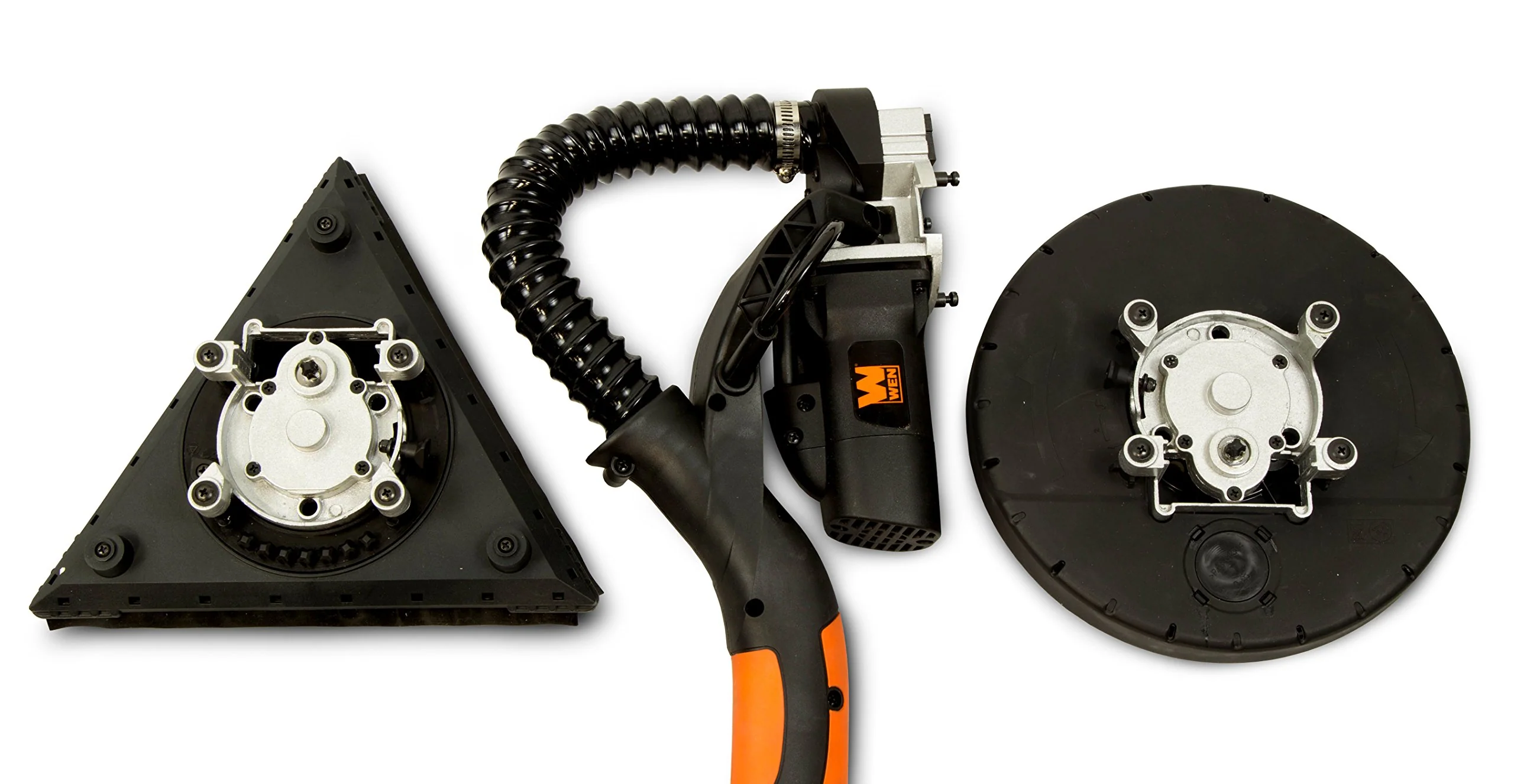 Remember when you had options for your drywall sander? Two heads are better than one with the WEN Variable Speed Dual-Head Drywall Sander. With a pivoting head that swivels in all directions. the WEN Drywall Sander automatically adjusts to be flush against every surface that crosses its path. Swap on either the circular head or the triangular head depending on the task at hand. Both heads easily detach and install without the aid of any outside tools. Simply slide back the release latch. pick the desired pad shape and get sanding.