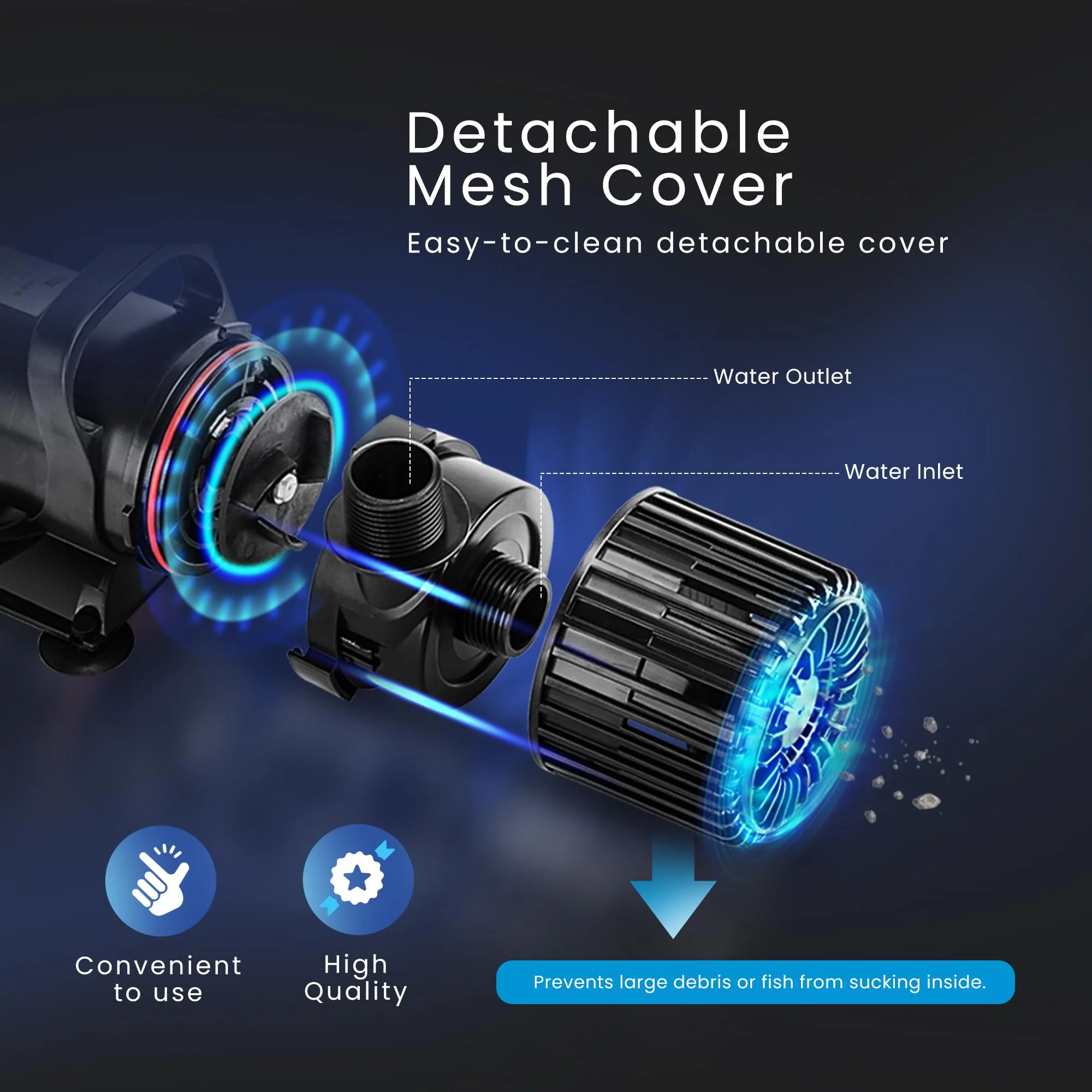 - THOUGHTFUL DESIGN - A protective mesh shield encloses the pump and keeps out large debris. which reduces the needs for maintenance; The portable handle makes it easy to move for your pumping needs; A pre-wired 20.3 feet power cord makes the pump easy to use; Significantly. using this pump along with VIVOHOME Bio Pressure Pond Filter can make your pond full of crystal clear water