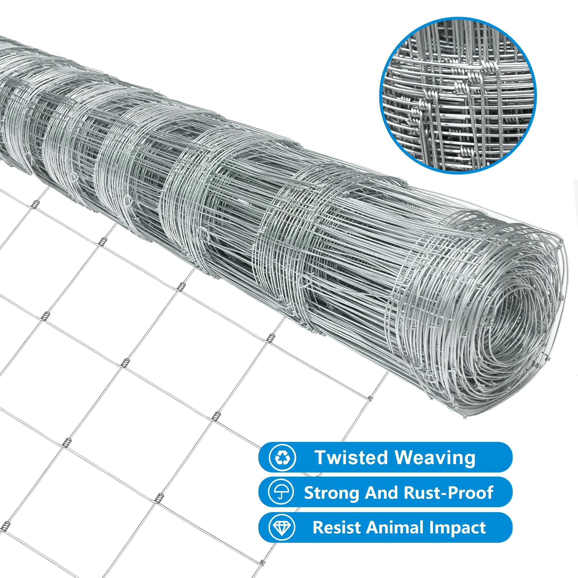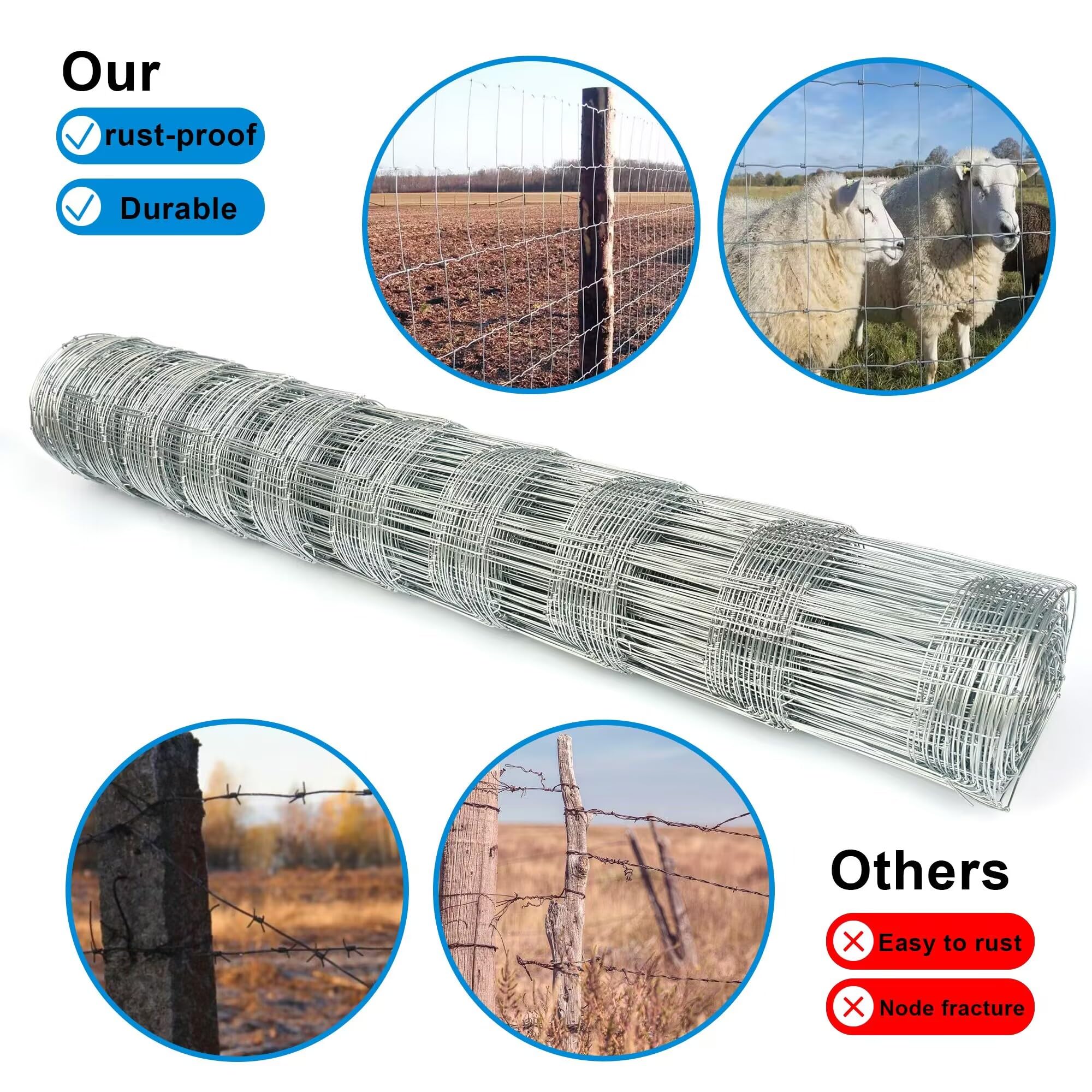 - ECONOMICALLY REASONABLE: Our cattle fences are all made with the latest twisted and weld-proof technology. which Reasonable save material and save investment costs for the user. They are featured by the high strength. easy installation and long service life. You can purchase with confidence.