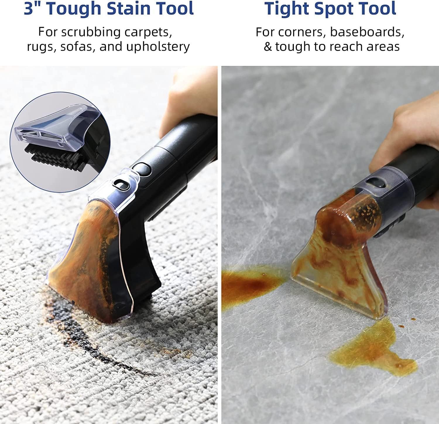 • ��Tools For Every Mess��You've got the tools for every mess with the 3.2 Tough Stain Tool for any areas and the Tight Spot Tool for crevices and tough to reach areas.