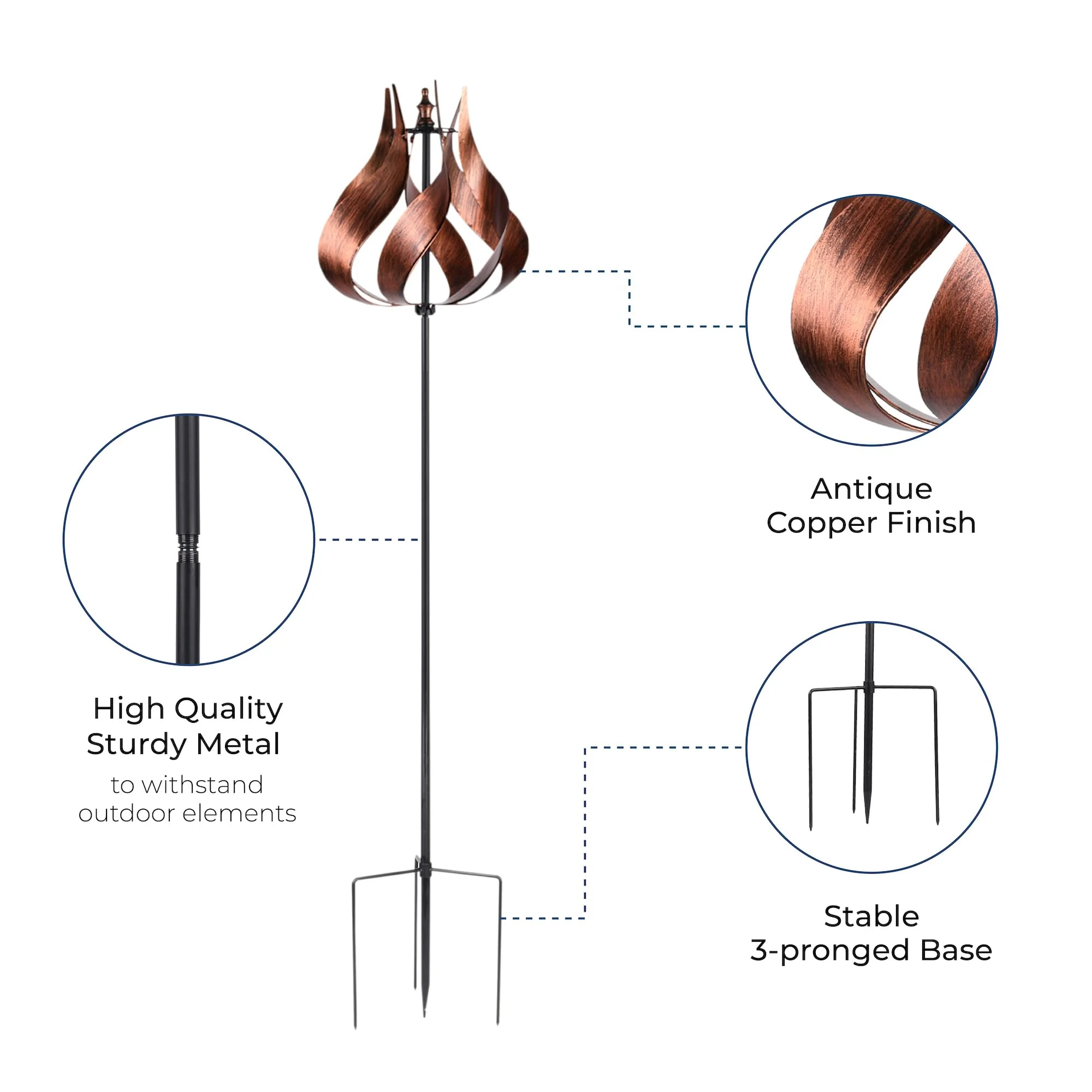 - SPINS BY WIND: Watch in awe when the wind powers the movement of the windmill resulting in a beautiful garden display