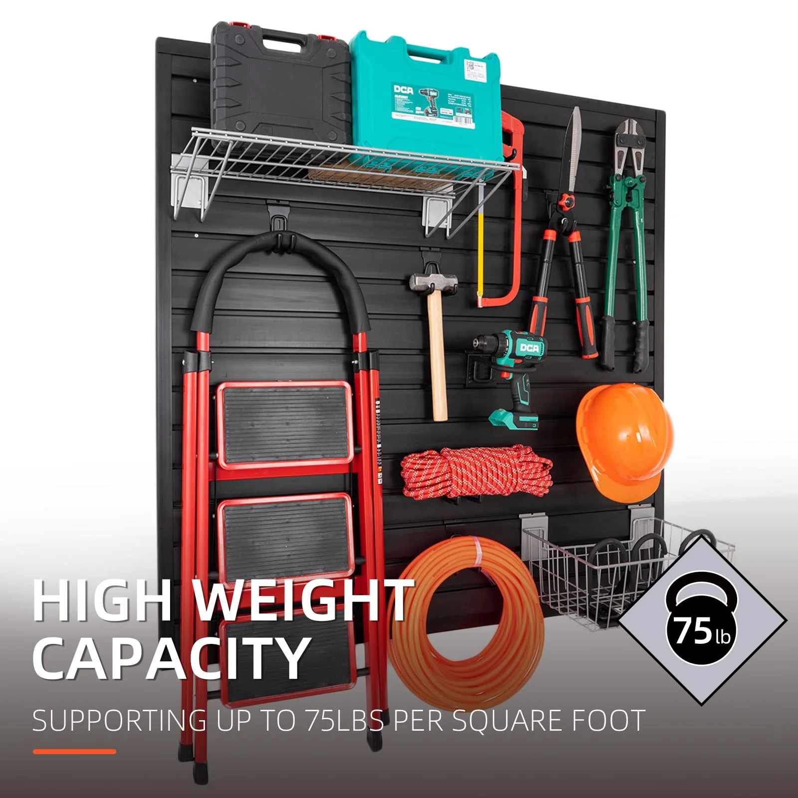 - MAKE FULL USE OF YOUR SPACE: Unleash the true potential of your garage wall organizer for tools with the garage slat wall panel. By making smart use of vertical wall space. you can revolutionize your garage into a seamlessly organized and efficient area. Bid farewell to a messy garage and welcome a meticulously optimized space that maximizes every inch available. Enjoy effortless access to your tools. equipment. and accessories. all while crafting a visually captivating environment.