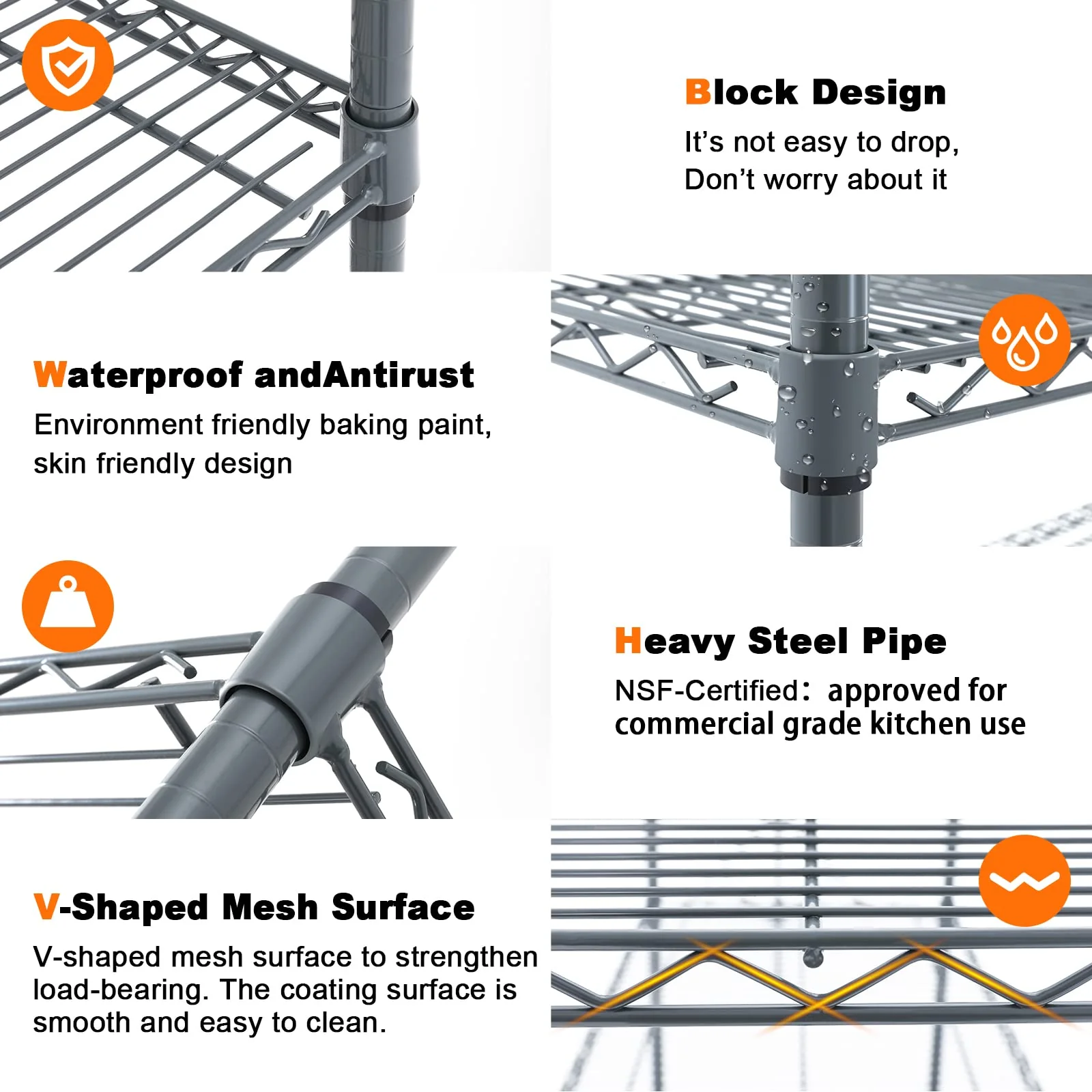- ��HIGH-QUALITY MATERIAL��: This metal shelf is made of heavy steel. so it has extremely strong load-bearing capacity. The metal rack is covered with a powder coat finish that not only has a smooth finish. but also resists water. rust or corrosion. Placing the shelving unit in your kitchen or laundry room is no problem.