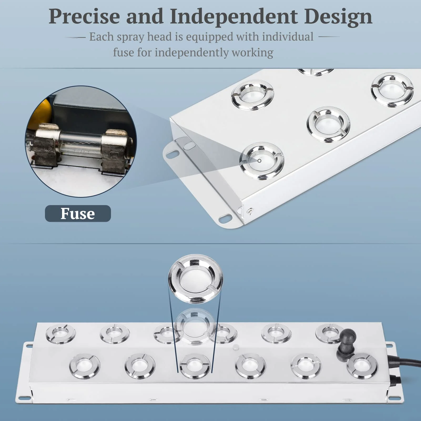 - UPGRADED & INDEPENDENT DESIGN - Each nozzle of this mist maker fogger has an independent fuse. If one of those does not work. it will not cause the entire product to fail. The pond fogger utilizes 1.7MH electronic over-frequency oscillation to produce the mist and water spray. Just put ultrasonic Fogger in the water. and plug it in then the mist appears. In order to better show the effect of the atomizer. advise using clean water