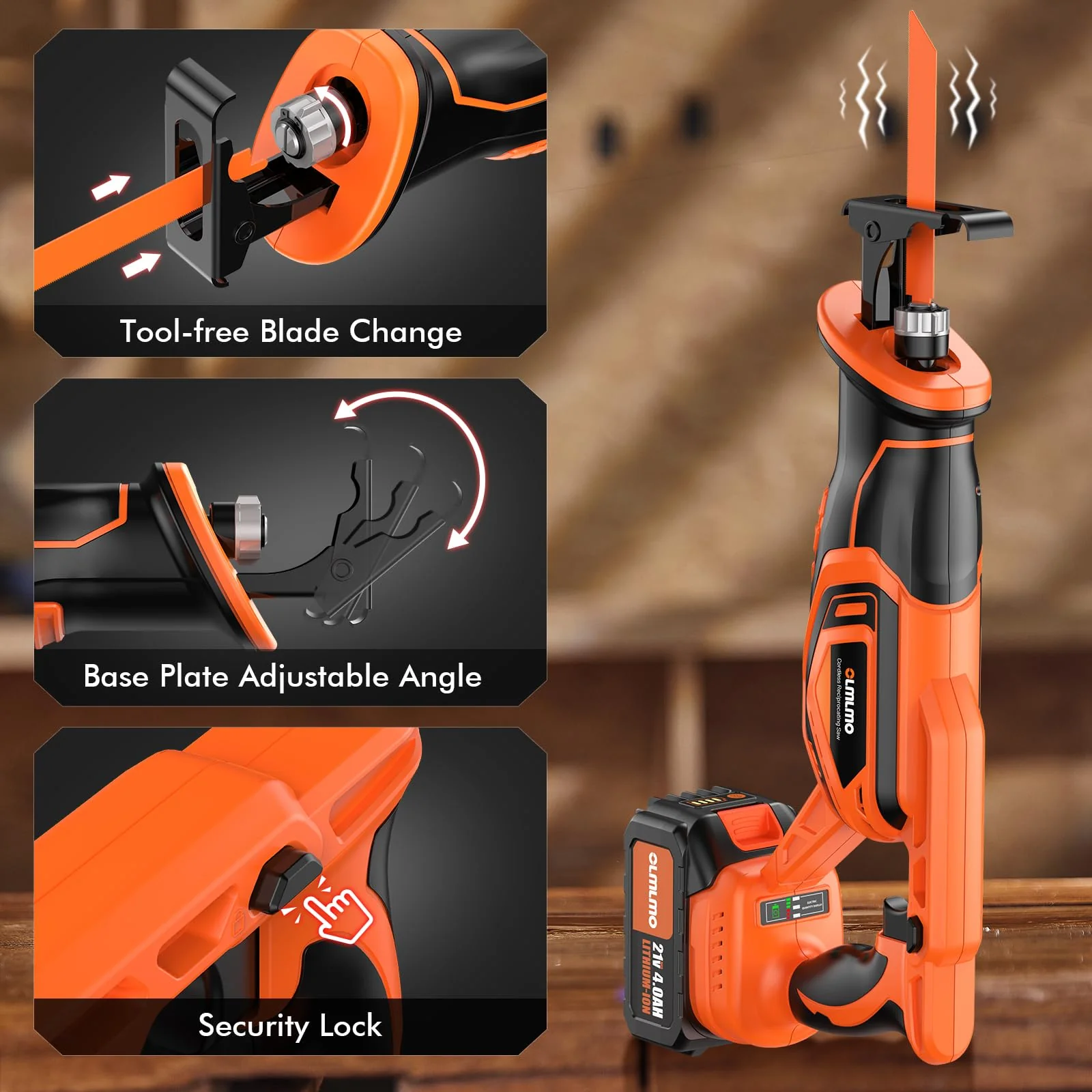 - Cordless saw design: Cordless reciprocating saw design saves you from the hassle of dragging. yanking. and positioning power cords. It is a reliable tool for various household tasks. You can use reciprocating saw for interior management. house construction. home use. and work to quickly complete various cutting jobs