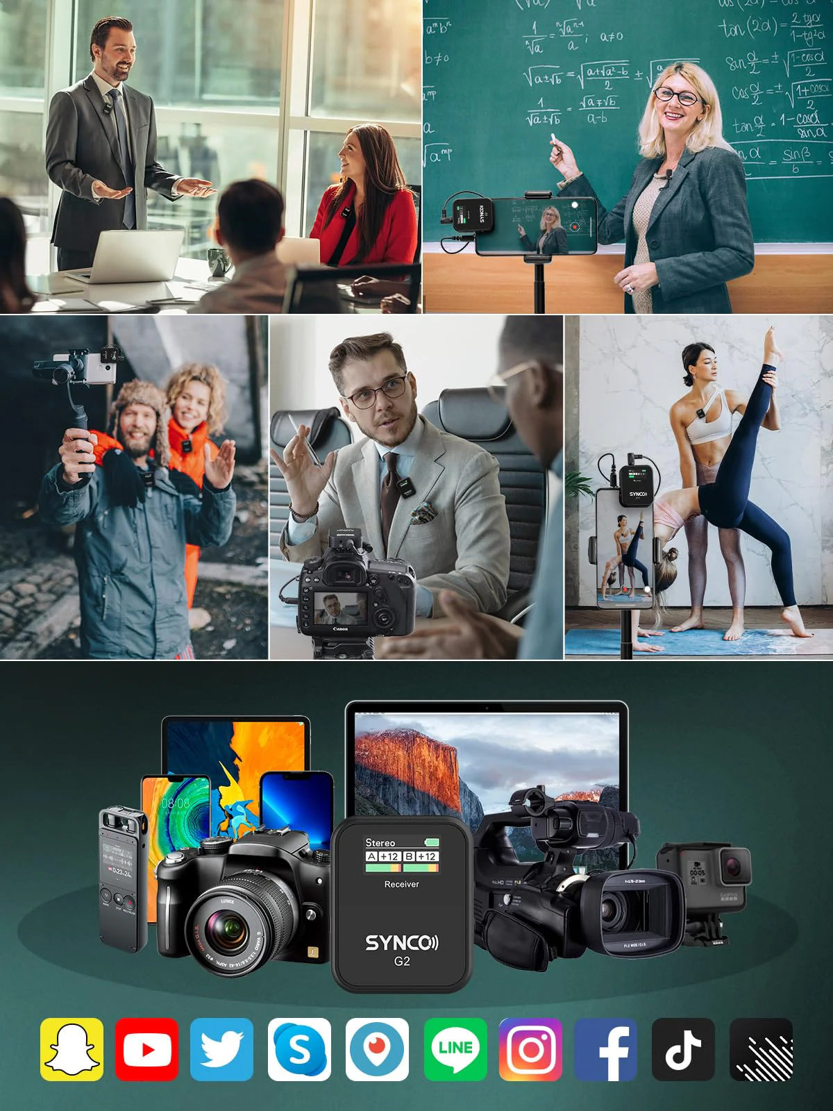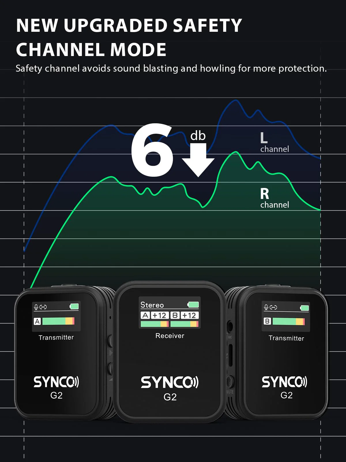 - ��Dual-Channel System & Mono/Stereo Mode��SYNCO G2(A2) wireless lavalier microphone is capable of handling 2 transmitters and 1 receiver simultaneously. and features the ability to switch between Mono or Stereo outputs mode. easy for post processing. ideal for face-to-face interviews. Youtube video and other two-person shoots.