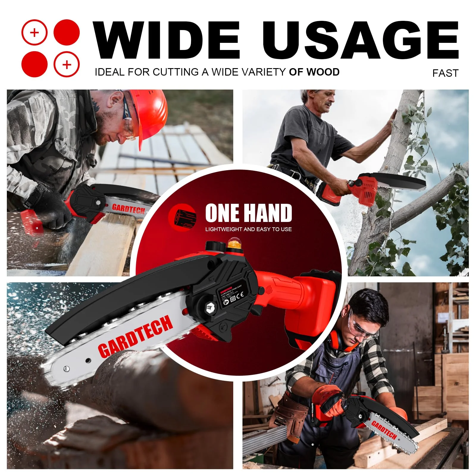 - ��PERFECT GIFT CHOICE��6 Inch Mini Chainsaw Cordless weighs only 2.6 lbs that can be used to cut tree trunks. divide wood blocks. and complete DIY work on wood. Gardtech Mini Chainsaw with gift packaging is the best choice as a gift given for Husbands. Dads. Moms. DIYers. and Friends.