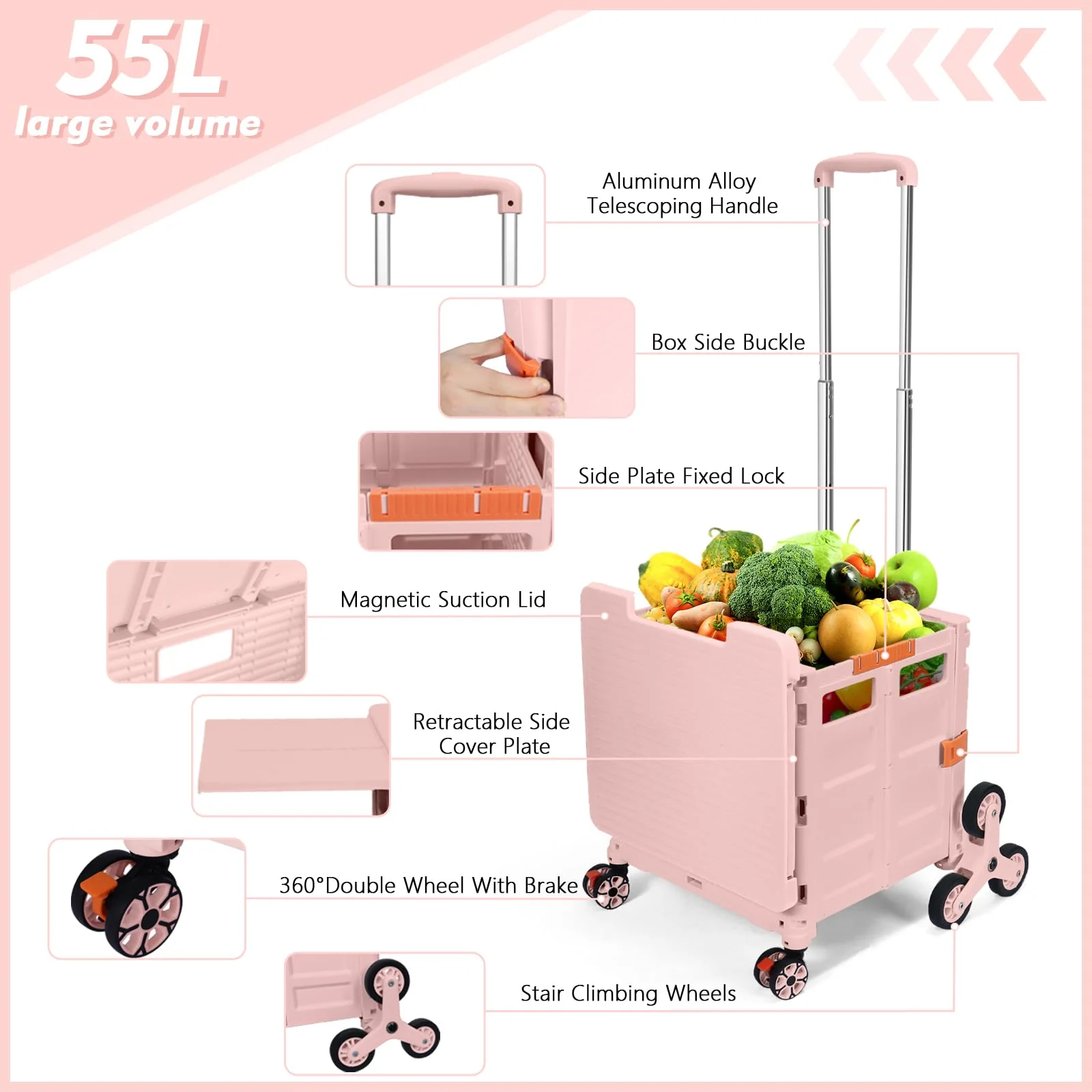 - ��Adjustable telescoping handle&Magnetic Lid Telescopic Cover��We designa 3 level adjustable telescoping handle for our durable utility handcart and extendable magnetic sliding lid allow you to transport more different kinds of item like books files classroom supplies grocery laundry or art supplies storage for traveling. shopping.picnic or moving. etc.