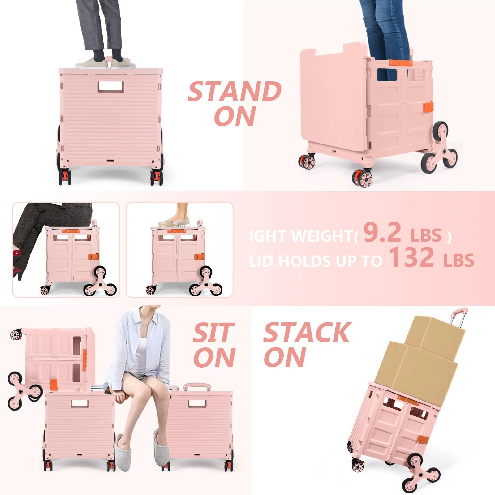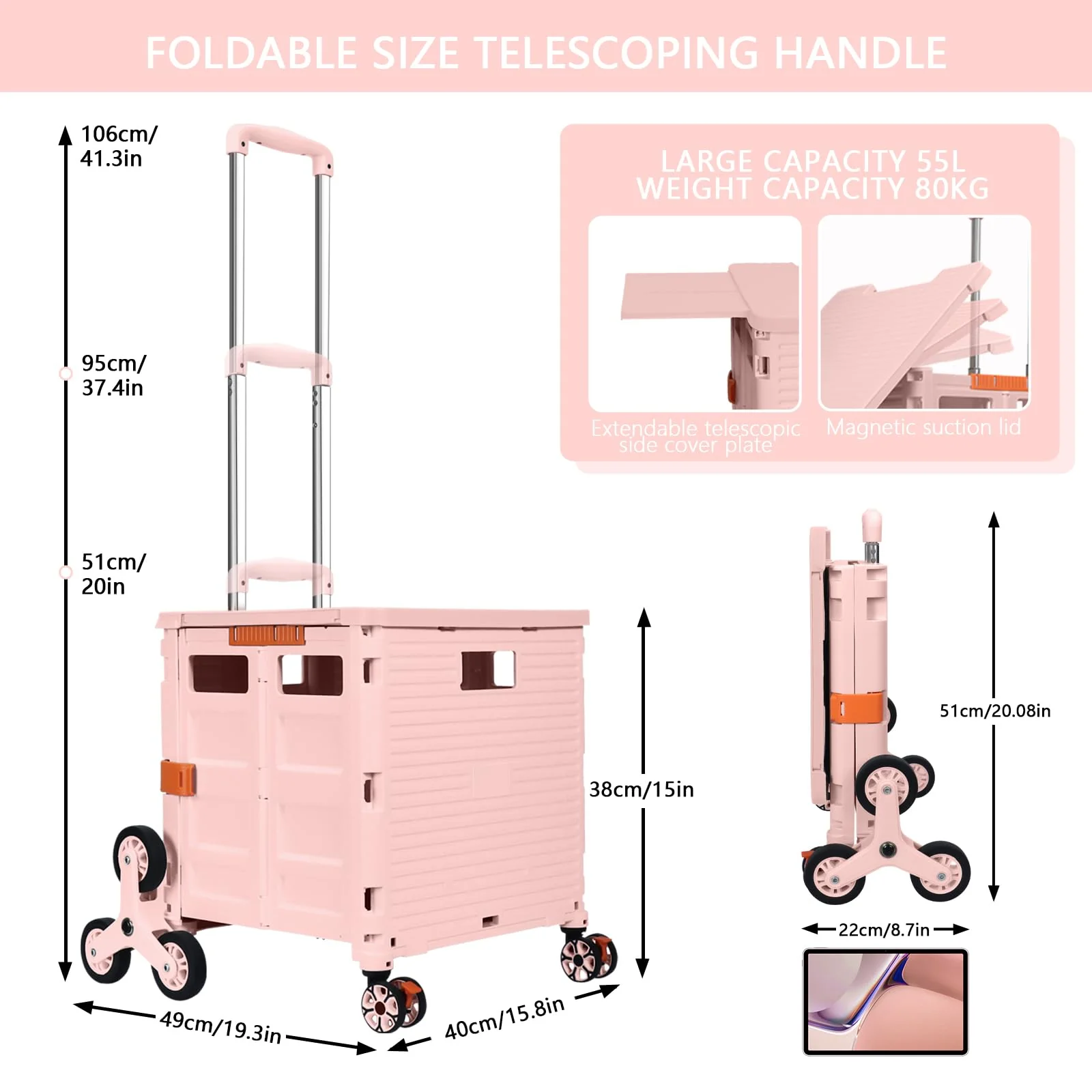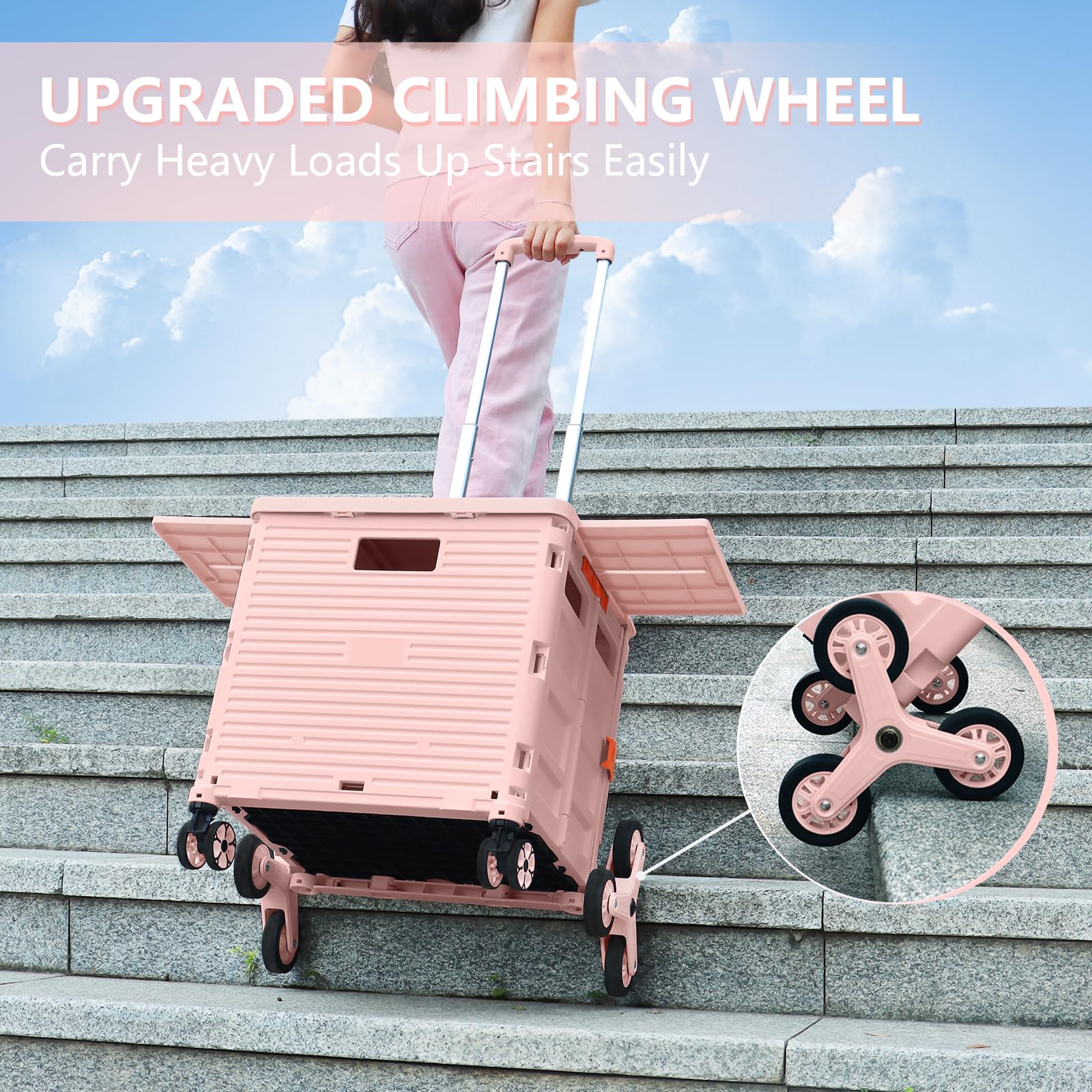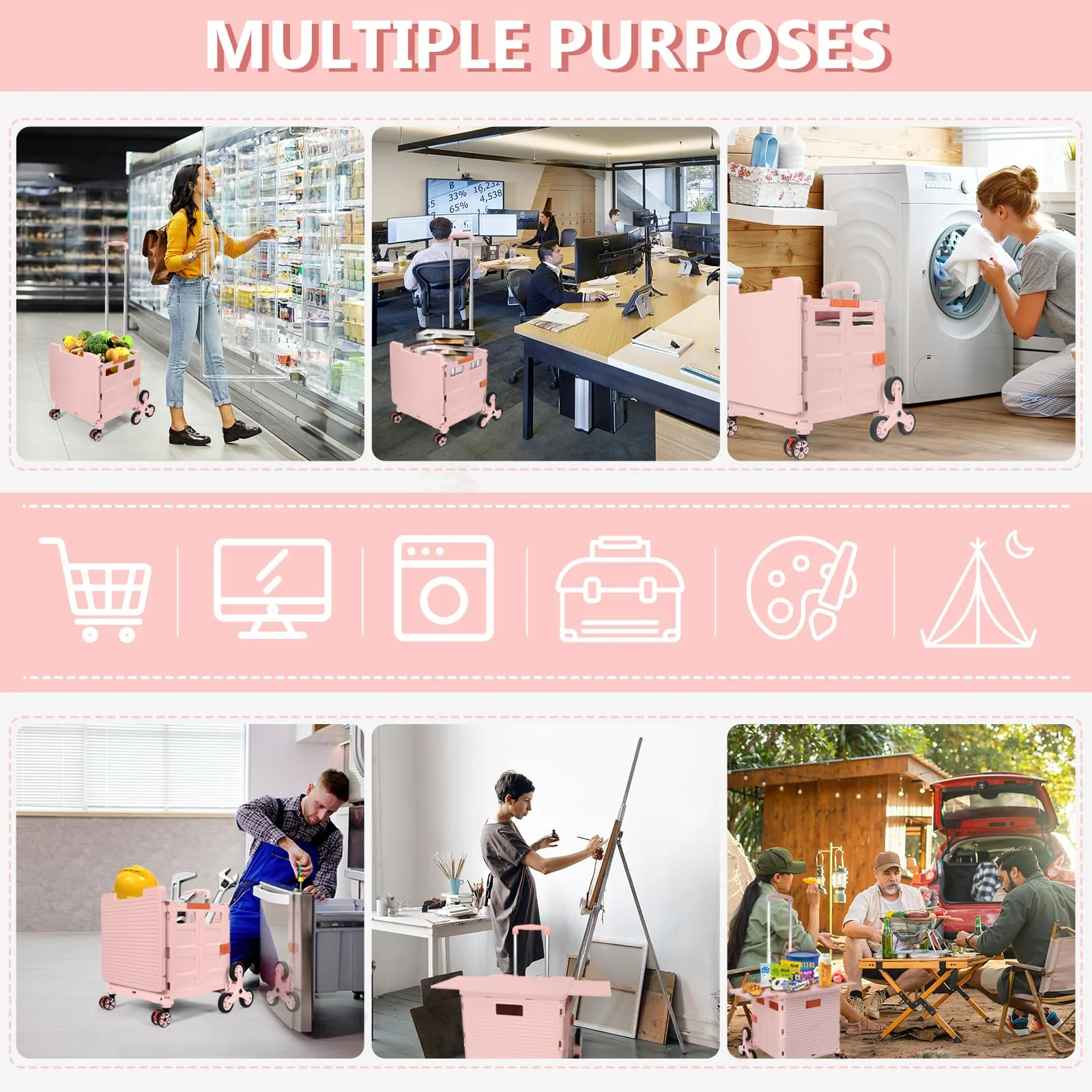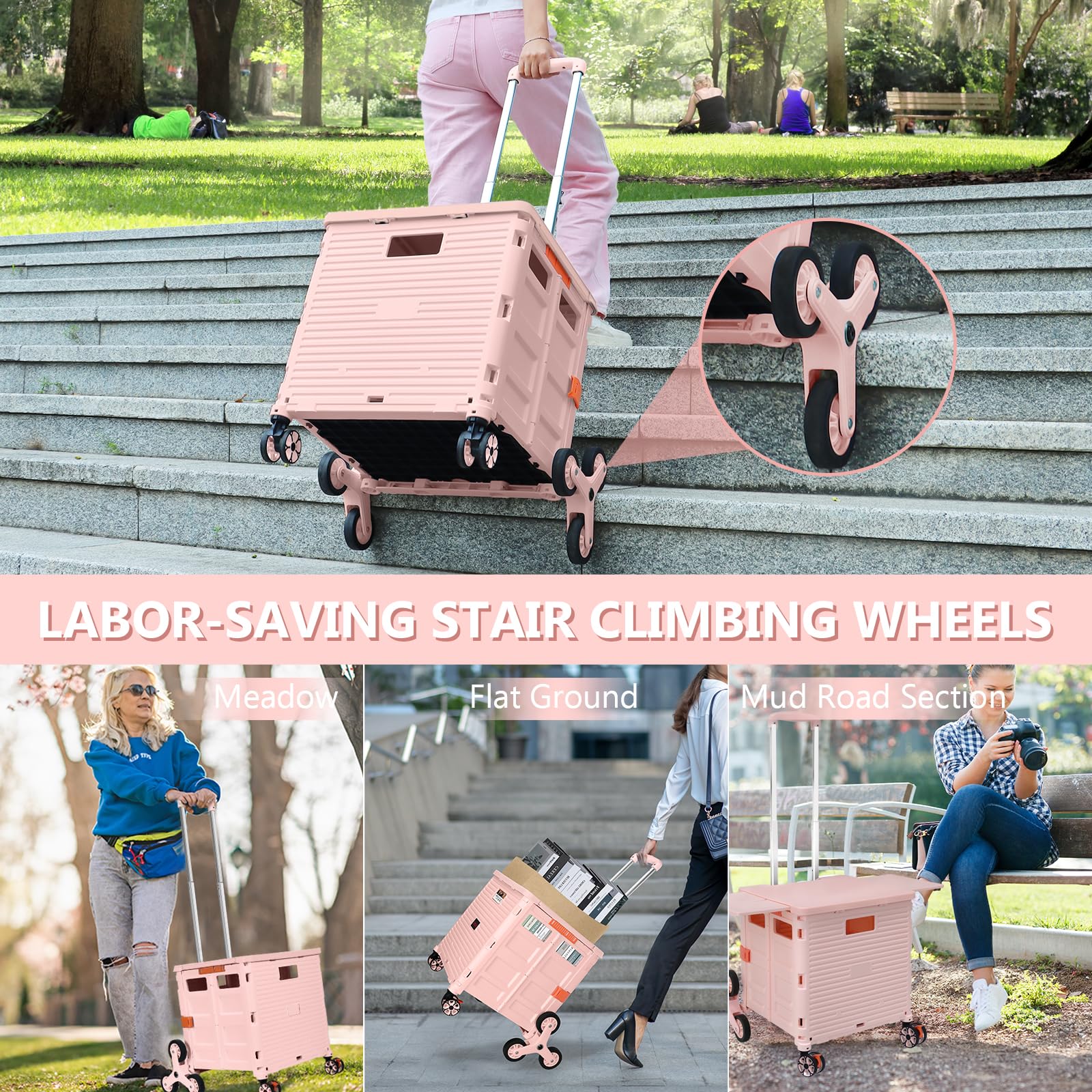 - ��360��Swivel front Wheels&Stair Climbing Wheels��We equip our Collapsible rolling cart with 6 stair climbing wheels and 2 360��noiseless Swivel Wheels with brakes.The TPE rubber wheels enhance the wear resistance. allowing you to experience optimal maneuverability.making it easier to carry heavy loads up stairs and easily turn and change direction on any bumps.