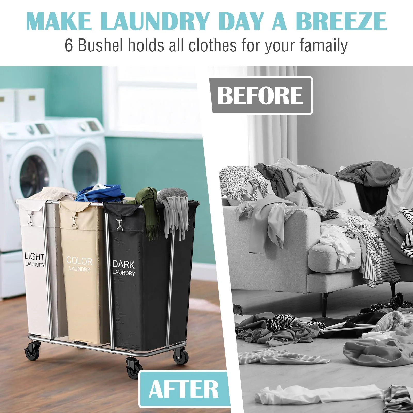 - ��Commercial & Home Use��: This 3 bag laundry sorter is versatile for commercial and home use. including hotels. inns. laundry rooms. dorms and everyday household needs. Its sturdy heavy-duty structure ensures optimal performance in various settings.