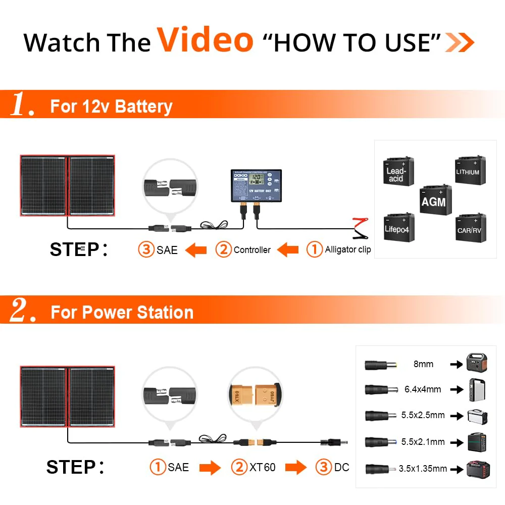 • ��XT60 EXTENSION CORD AND BRACKET��-- If you want to find additional extension cord and support bracket for your DOKIO solar panel.