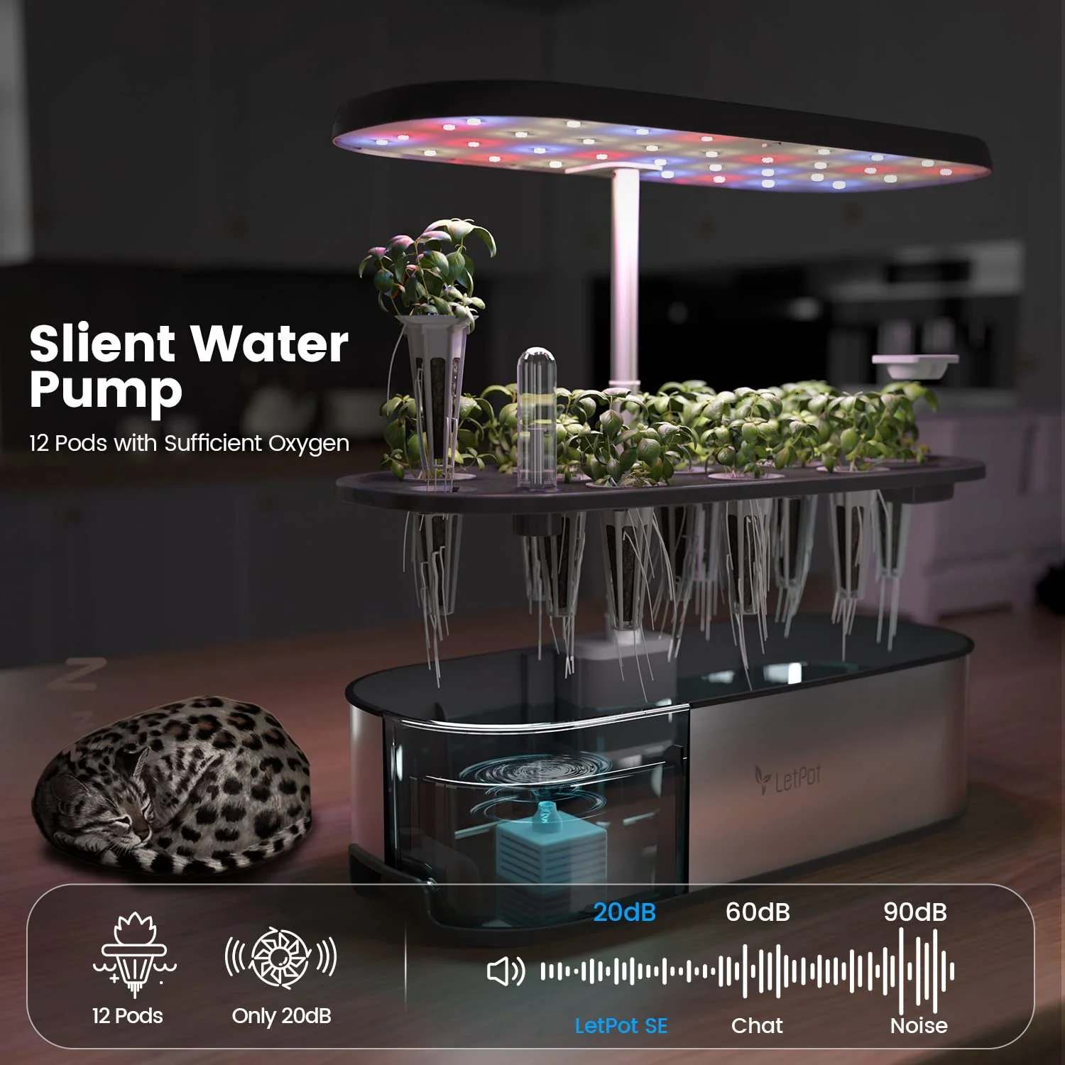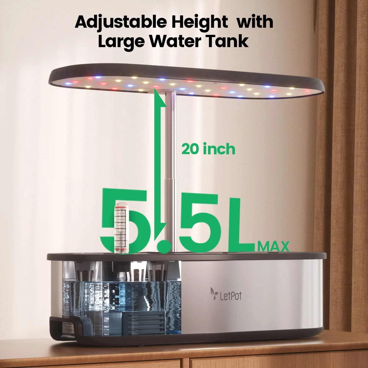 - PERFECT INDOOR GARDEN KIT: Our LetPot Hydroponic Growing System is the perfect all-in-one solution for your indoor gardening needs. With 12 planting cups. including sponges. baskets. covers. and A&B nutrients. you have everything you need to get started. Plus. the LED lighting rod is adjustable up to 19.5 inches to accommodate plants at different growth stages. and the 5.5-liter water tank allows for up to 3 weeks of growth without the need for watering.