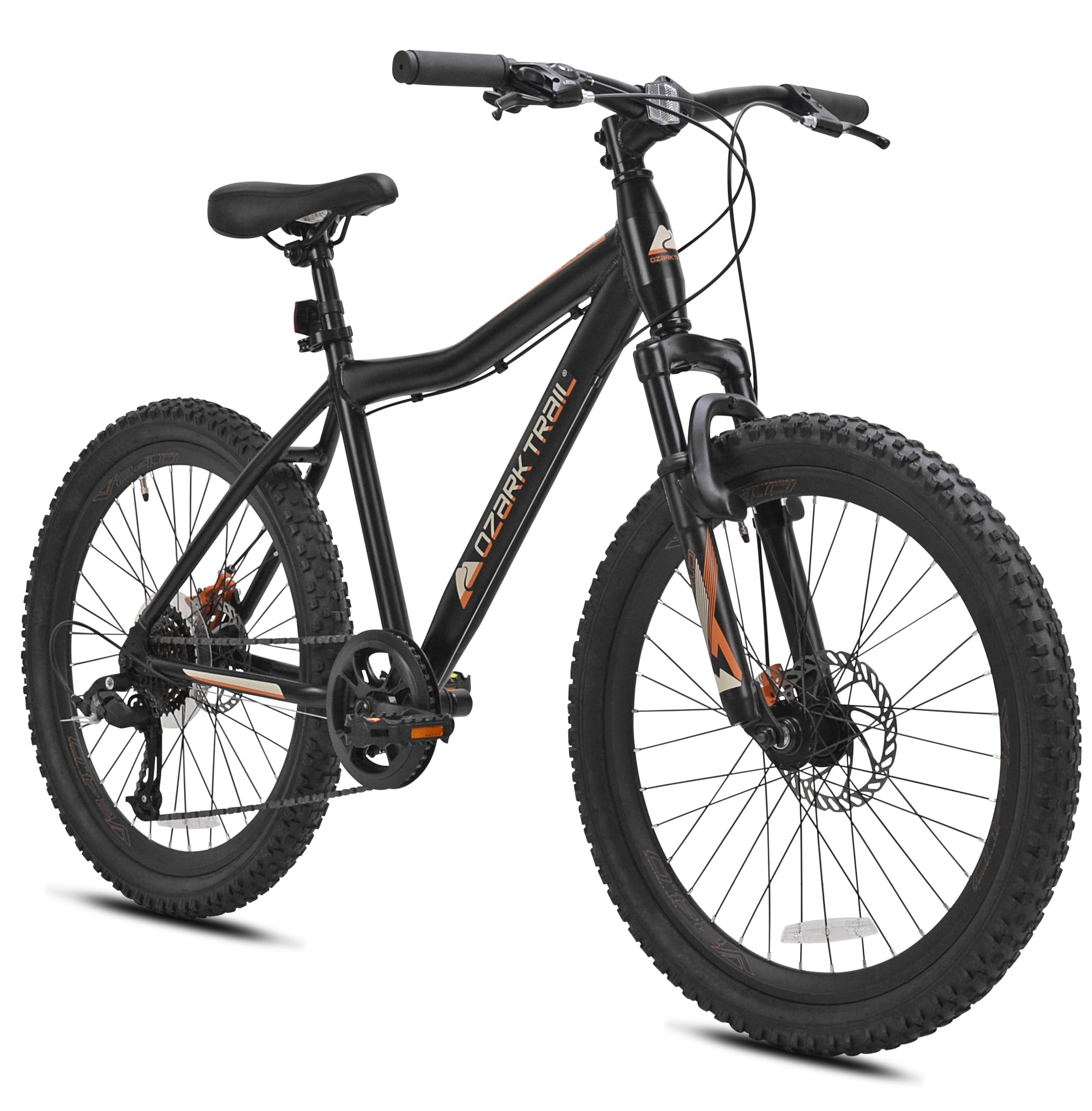 - Ozark Trail 24 Youth Glide Aluminum Mountain Bicycle 8 Speeds Front Suspension Dual Disc Brakes Black