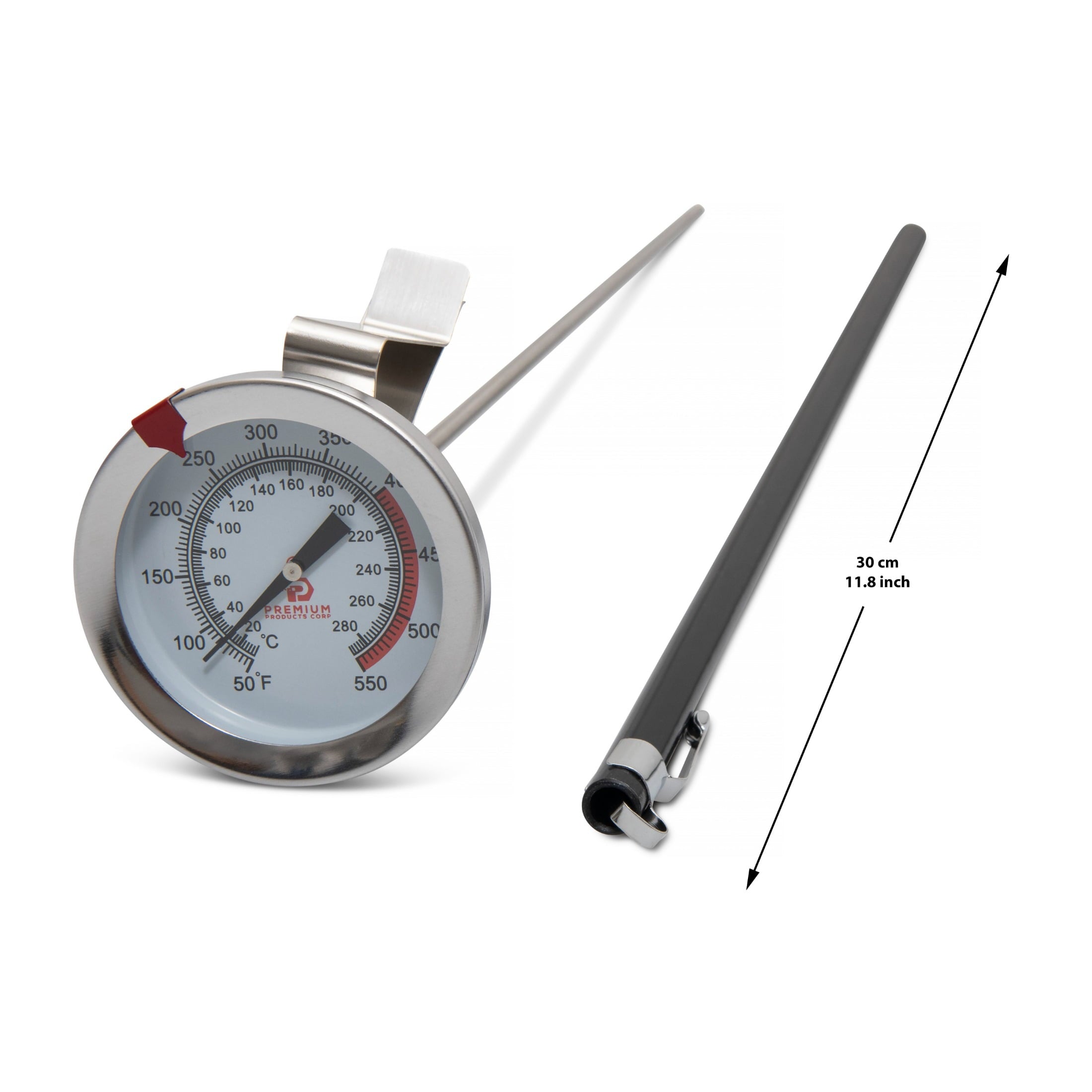 - Included in this offer is a deep fry cooking thermometer that is made of glass and is used for measuring much hotter temperatures than a meat thermometer.