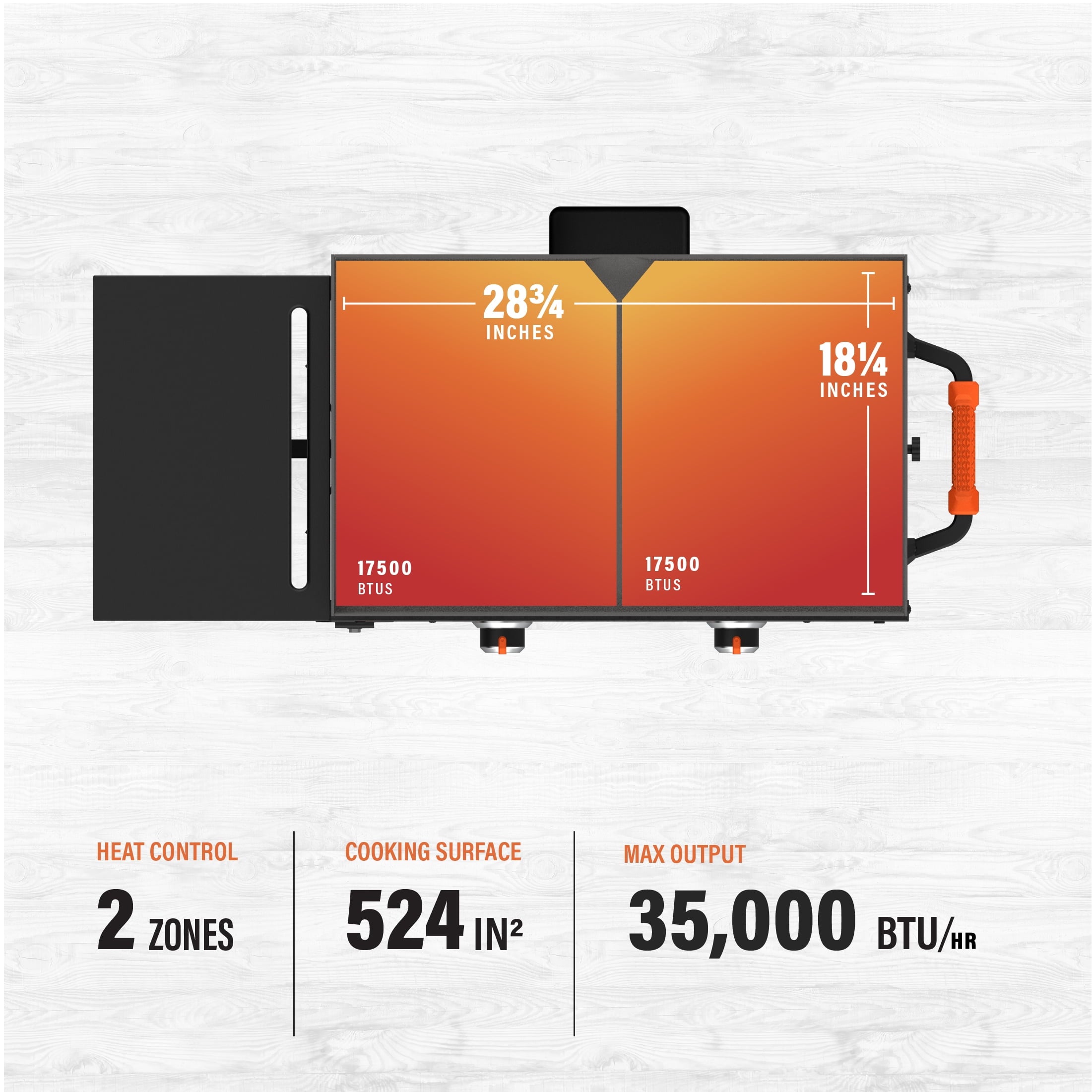 - 524-square-inch cooking surface