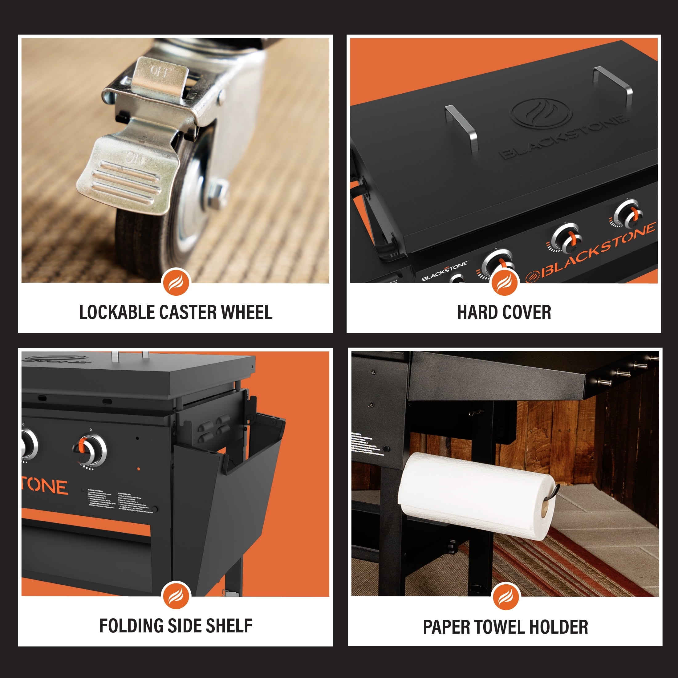 - Rolled steel griddle top