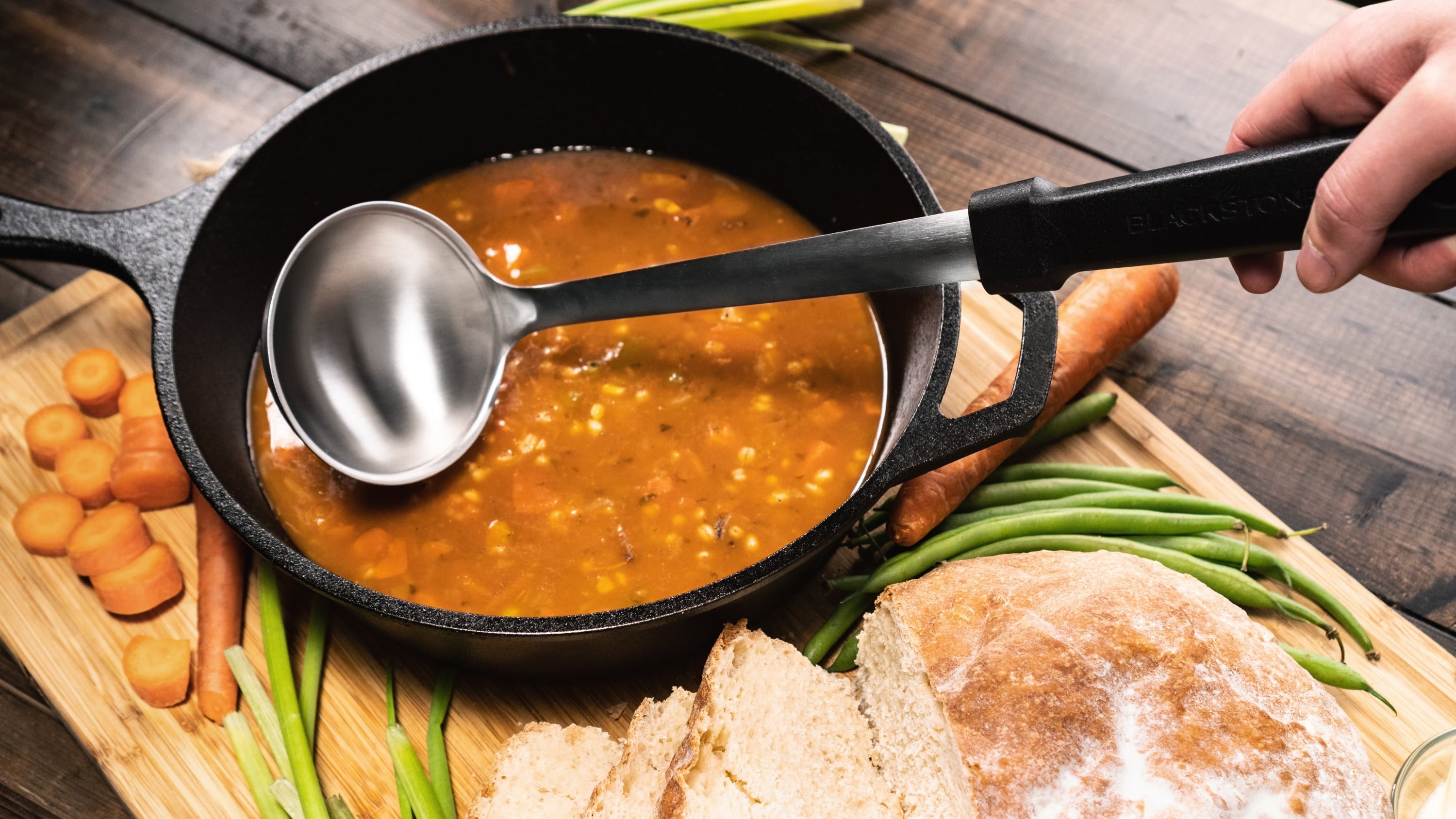 - Dish up whatever you make with the 4-ounce ladle