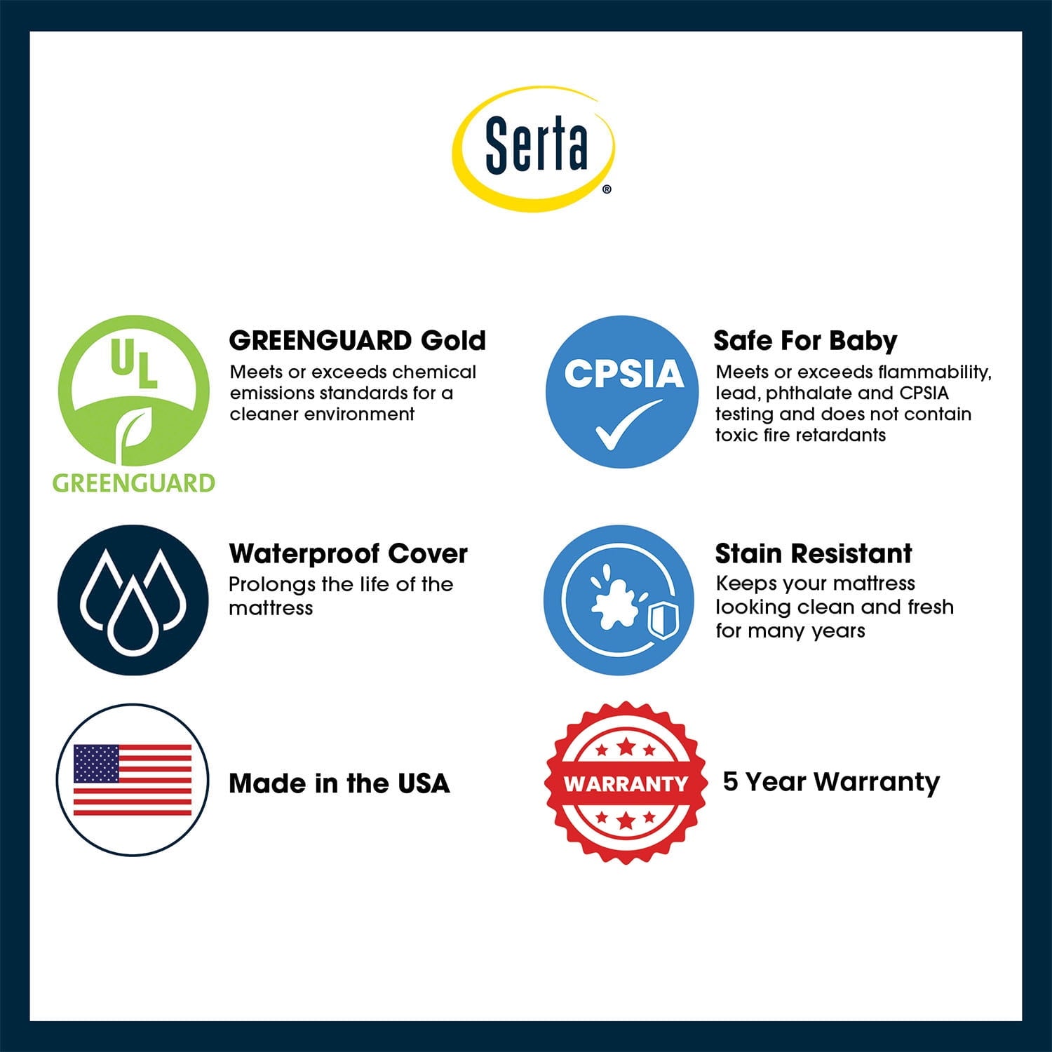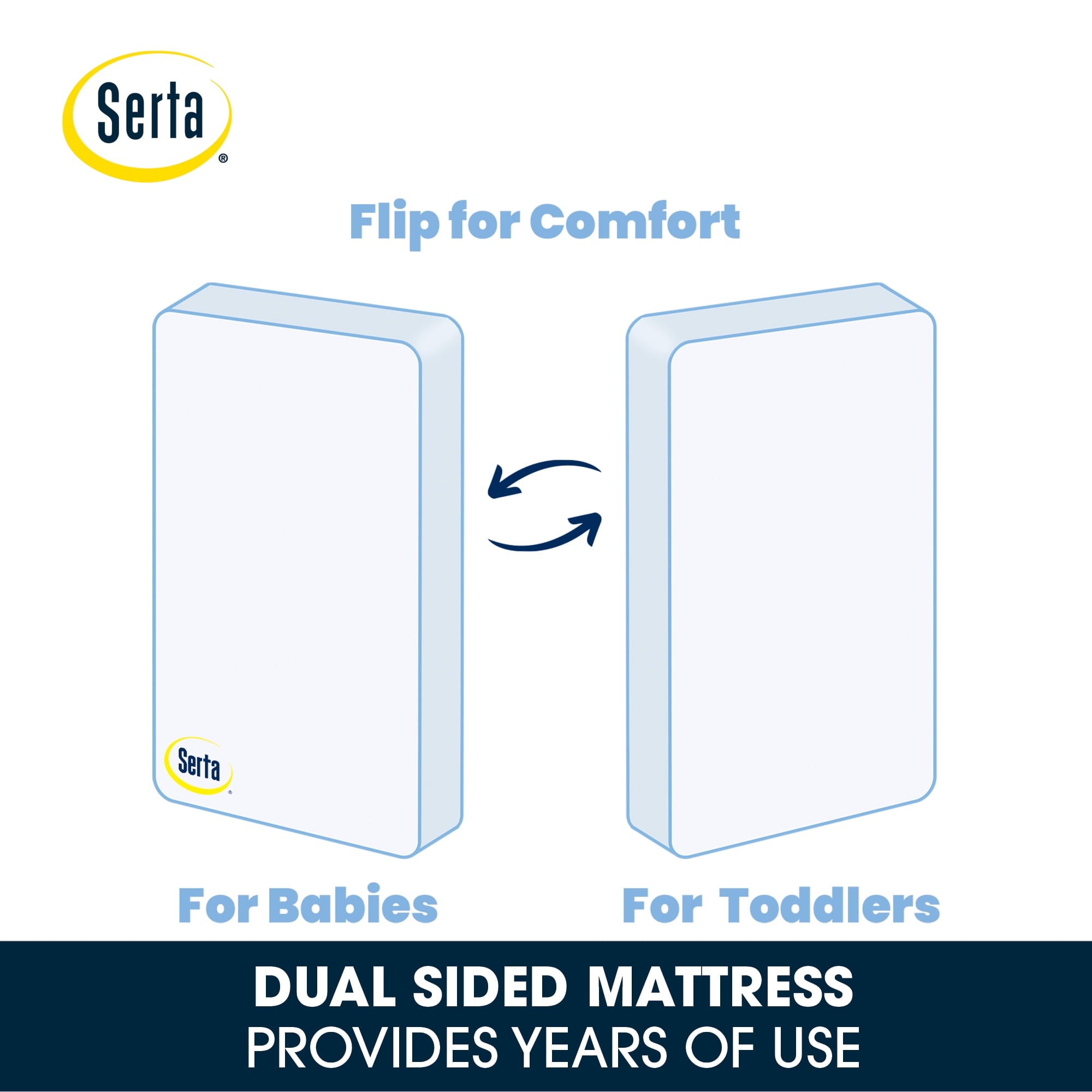 - IDEAL FOR BABY: Serta?s SleepTrue Sparkling Sky 5-Inch Crib and Toddler Mattress features a thermo-bonded polyester fiber core for firm comfort and support