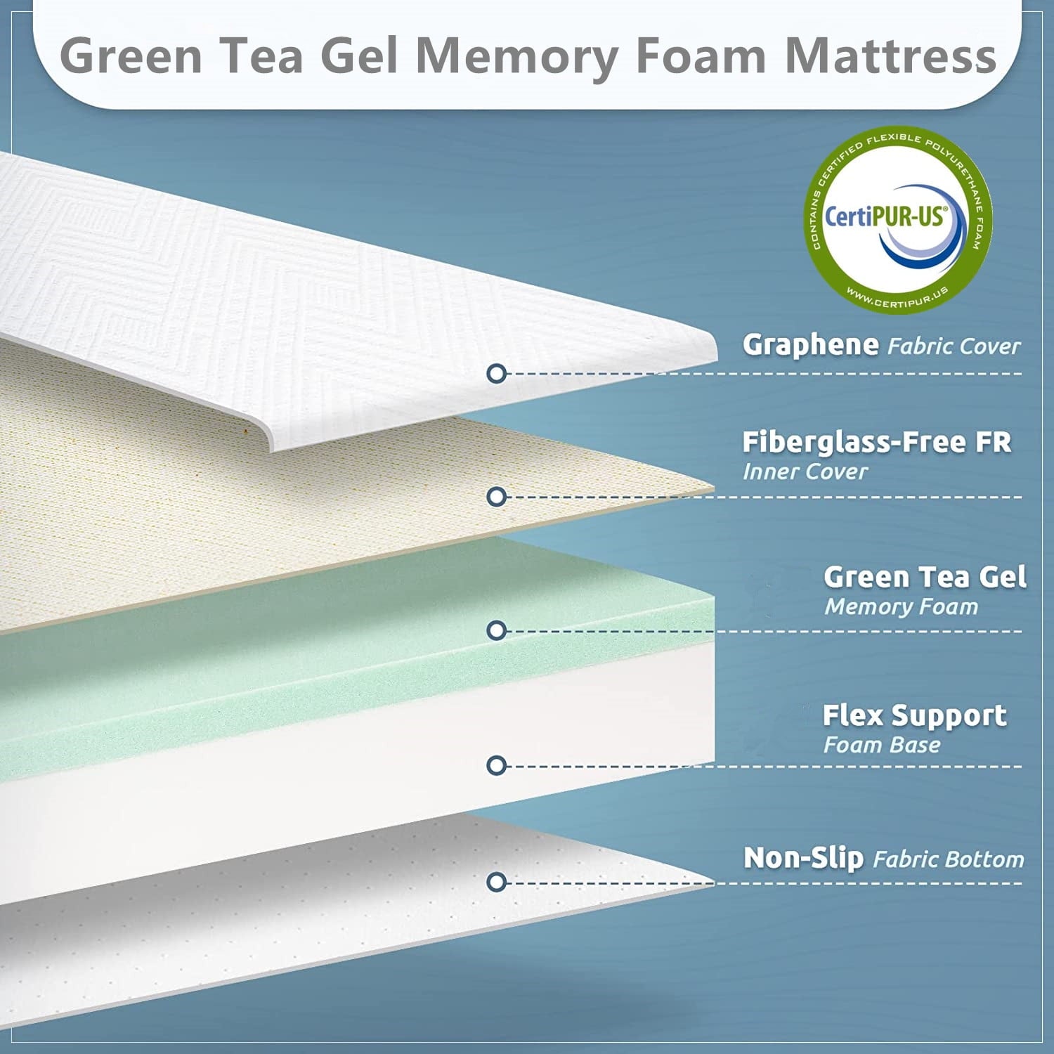 • [No more sweaty nights.] Green Tea extracts and cooling gel are added to make it a mattress with great breathability and cooling comfort. The smart graphene fabric cover is up to 50% more breathable for a cooler sleep surface and clean sleeping environment.