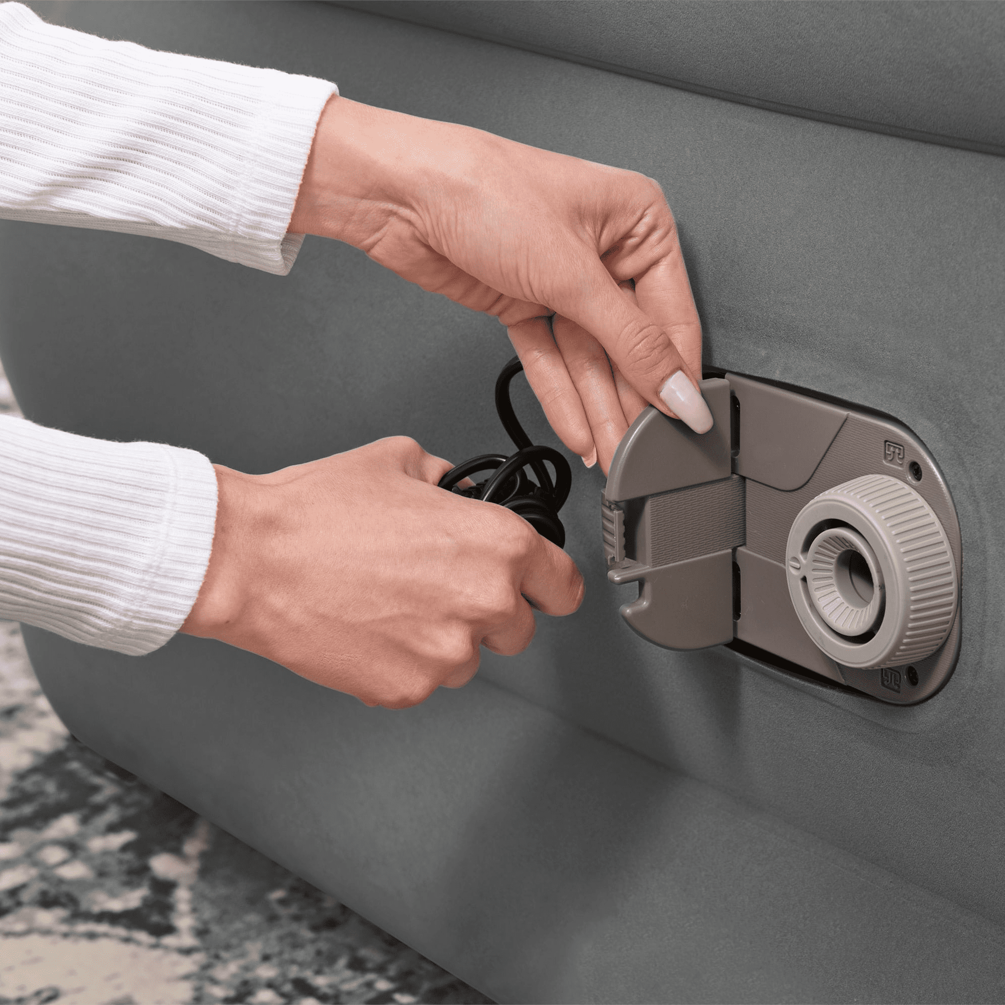- Built-in 110-120V~ AC pump inflates the bed in 5 minutes