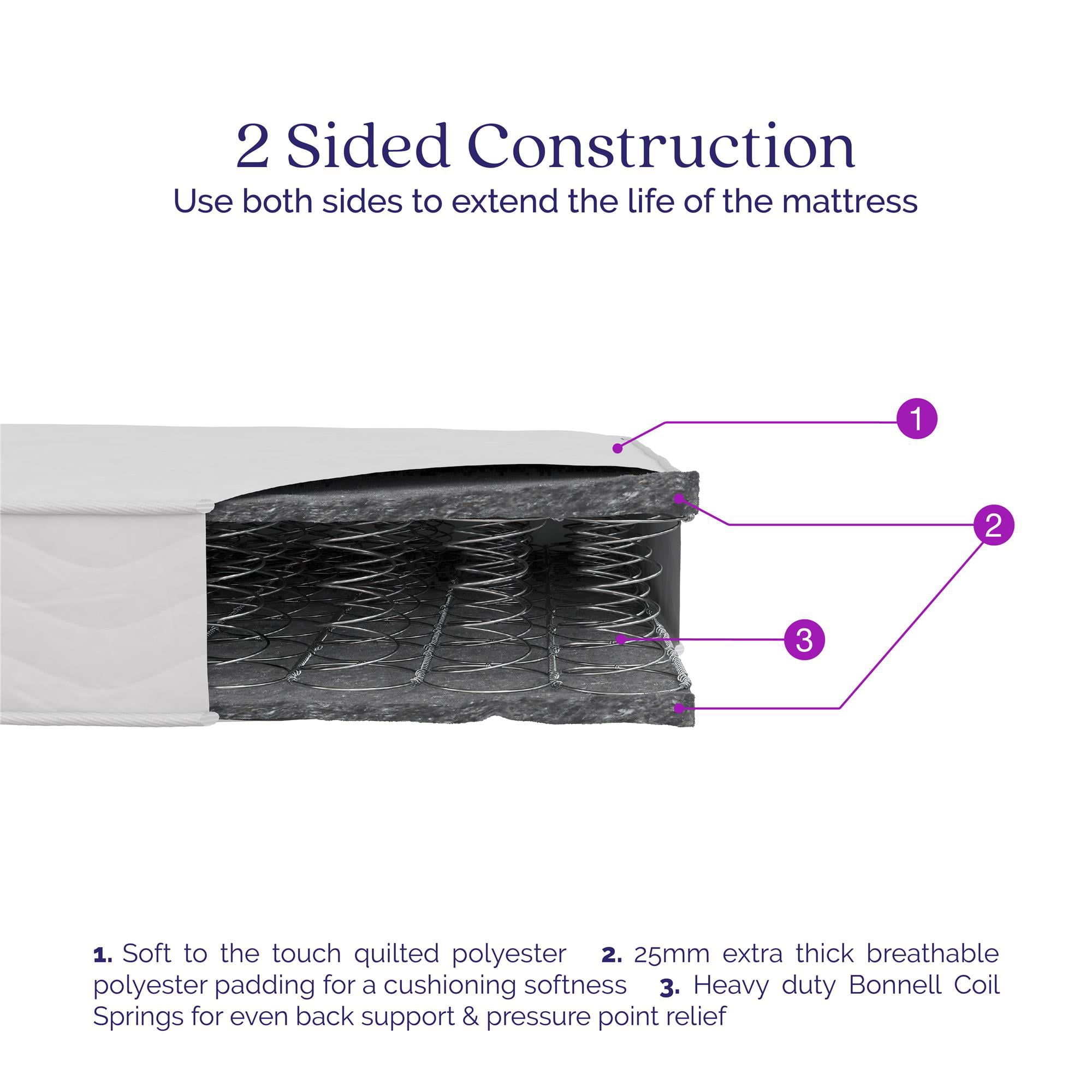 • Durable innerspring core with 5-inch-312 count high gauge steel Bonnell coil springs to deliver even weight distribution relieve pressure points and promote neutral spine alignment