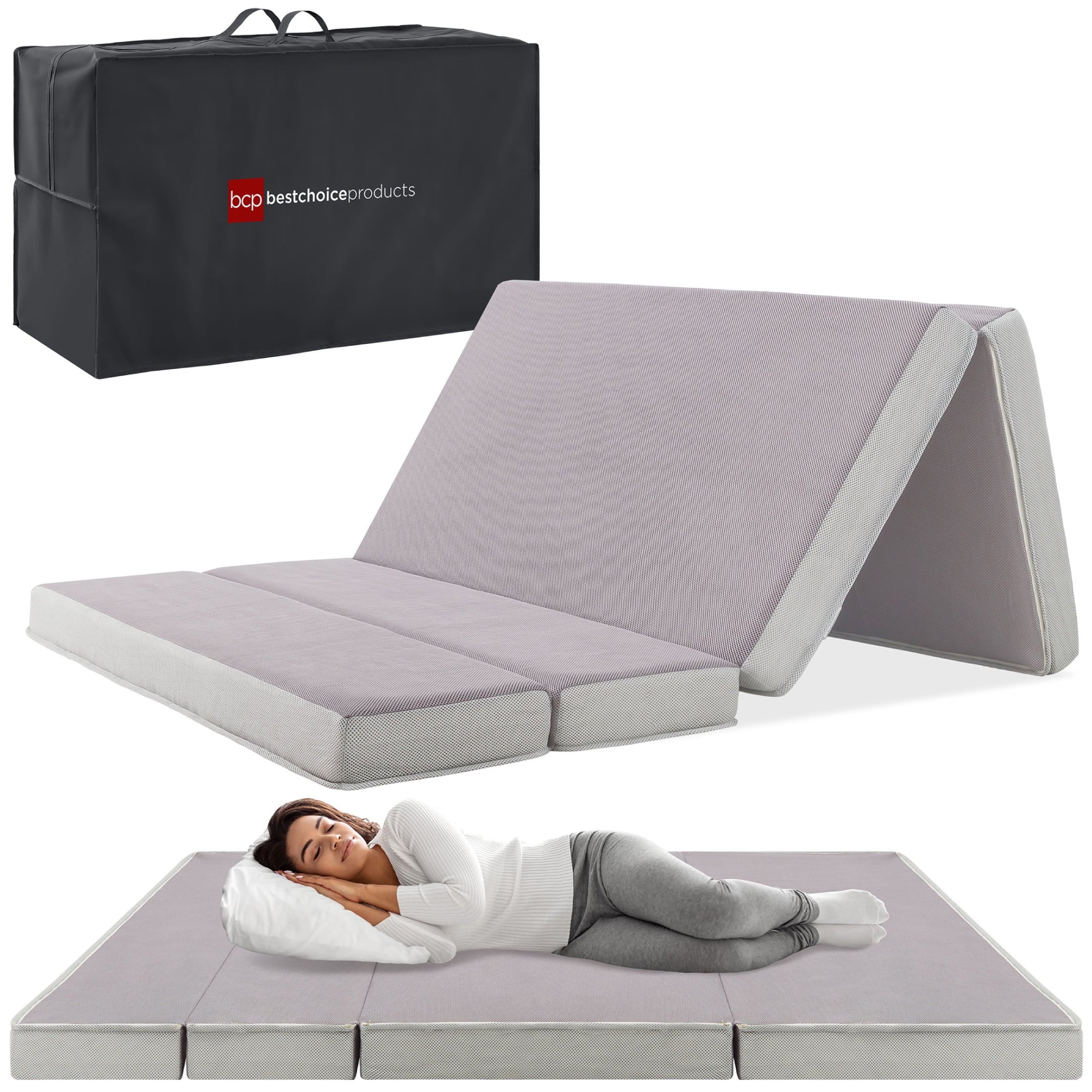 - PORTABLE AND SPACE-SAVING: Simply slip the included carrying case over the portable tri-fold mattress and zip it up to keep it neat and secure while you travel