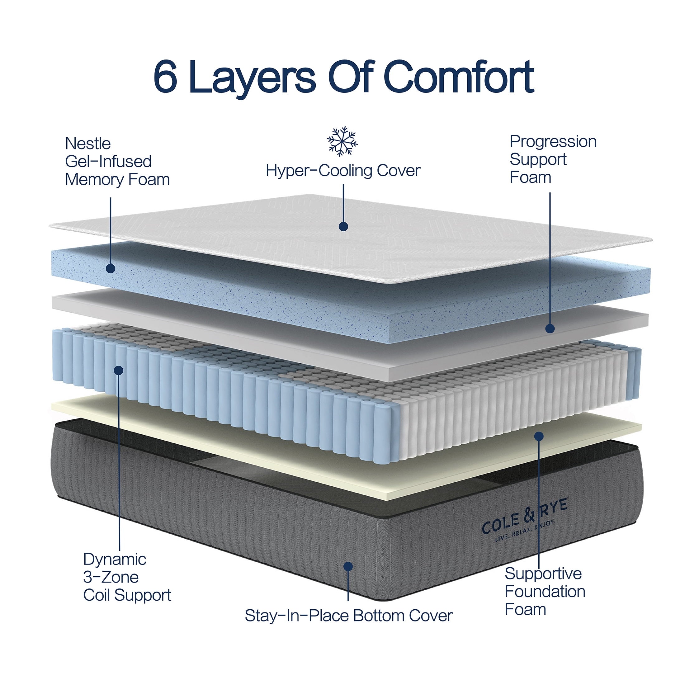 Cole & Rye ArcticSky 14 Medium Plush Hybrid of Gel Memory Foam and Spring Mattress with BONPillow(s) Queen