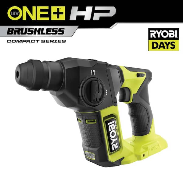 Enhance your RYOBI 18V ONE+ HP System with the RYOBI 18V ONE+ HP Compact Brushless 5/8 in. SDS-Plus Rotary Hammer. ONE+ HP Technology delivers more power runtime durability and speed utilizing brushless motors advanced electronics and high performance lithium technology. Our compact tools are the lightest and smallest we have ever made while still delivering optimal power to get the job done. Measuring at only 11.4 in. in length this tool is 43% lighter weight than its full-size model giving you better access to tight workspaces and overhead applications. With ONE+ HP technology this tool can deliver up to 6200 BPM. It also features 2 modes: rotary hammer and drill. The on-board LED worklight creates extra visibility for all your projects needs. Best of all it is part of the RYOBI ONE+ System of over 280 Cordless Products that all work on the same battery platform. This 18V ONE+ Compact Brushless 5/8 in. SDS-Plus Rotary Hammer is backed by the RYOBI 3-Year Manufacturer's Warranty and includes (1) PSBRH01 18V ONE+ HP Compact Brushless 5/8 in. SDS-Plus Rotary Hammer and Operator's Manual. Battery and charger sold separately.