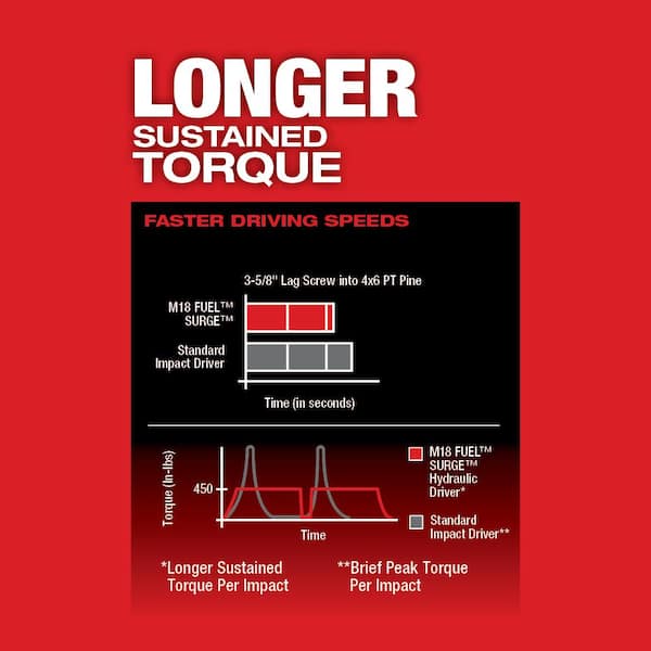 The M18 FUEL SURGE 1/4 in. Hex Hydraulic Driver is the quietest cordless fastening solution on the market. With Milwaukee's new FLUID-DRIVE Hydraulic Powertrain users will experience up to 50% quieter operation 3X less vibration for smoother operation and faster driving speeds compared to standard impacts. The POWERSTATE Brushless Motor delivers up to 0-3000 RPM with constant power output to drive screws faster. REDLINK PLIntelligence is the most advanced Electronic system on the market preventing damage to the tool and battery caused by overloading or overheating. For use with REDLITHIUM Compact Batteries or Extended Capacity Batteries (sold separately) which deliver more work per charge and more work over the life of the pack than competitive batteries on the market. The 4-Mode DRIVE CONTROL provides greater control over output speed and power for greater versatility. Self-Tapping Screw Mode is designed to reduce walking when starting self-tapping screws as well as reduce overdriving breaking and stripping out screws.