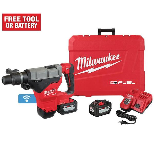The MILWAUKEE M18 FUEL 1-3/4 SDS Max Rotary Hammer with ONE KEY kit generates the power of a 15A Corded Rotary Hammer. It has a 1-3/4 capacity 8.1 ft-lbs of impact energy 380 RPM and 2900 BPM. The cordless rotary hammer is designed for the professional user allowing ultimate power control enhanced safety and productivity. The POWERSTATE Brushless Motor delivers 8.1 ft-lbs of impact energy that meets and rivals that of corded competition. REDLINK PLintelligence tool technology ensures maximum rotary drill performance and protects it from overload overheating and over discharge. The M18 REDLITHIUM High Output HD12.0 battery delivers unmatched run-time in all applications when used with the rotary hammer drill. It allows the SDS Max hammer drill to chip 1/2 ton of material per charge so users can work harder for longer. The full feature hammer delivers maximum control and enhanced safety with the AUTOSTOP E-Clutch. This prevents over-rotation in case the tool gets bound up while being used in drilling rebar or hard aggregate applications. Competitive tools can rotate up to 360 degrees while the Milwaukee rotary hammer will stop rotating at 45 degrees when the tool gets bound up. This feature is designed to ensure users have more control while on the job. The cordless rotary hammer is compatible with ONE KEY wirelessly connecting to user's smartphone to track and manage the tool's performance and location.
