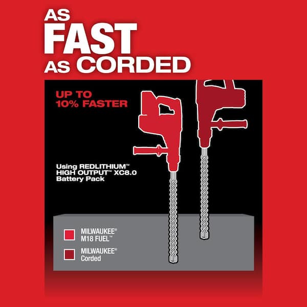 The M18 FUEL 1-9/16 in. SDS Max Rotary Hammer is the first to world 18-Volt SDS Max cordless solution. By utilizing proprietary M18 and FUEL technologies the 1-9/16 in. SDS Max rotary hammer is able to drill as fast as a corded SDS Max rotary hammers deliver corded durability and provide over 20-minutes of continuous chipping. POWERSTATE Brushless Motor delivers 5 ft./lbs. of impact energy for the more demanding heavy-duty applications. Including dry coring and medium-duty chipping in both concrete block and reinforced concrete. Powered by the new M18 REDLITHIUM HIGH DEMAND 9.0 battery pack which delivers up to 5X more run-time 35% more power and runs 60% cooler than standard lithium-ion batteries the 1-9/16 in. SDS Max rotary hammer delivers over 20-minutes of continuous chipping. It also includes REDLINK PLIntelligence the most advanced Electronic system on the market to prevent damage to the tool and battery from overloading and overheating. The M18 FUEL 1-9/16 SDS Max Rotary Hammer is part of Milwaukee's complete cordless rotary hammer solution ranging from Compact SDS Plus to SDS Max all powered by the M18 REDLITHIUM battery system.