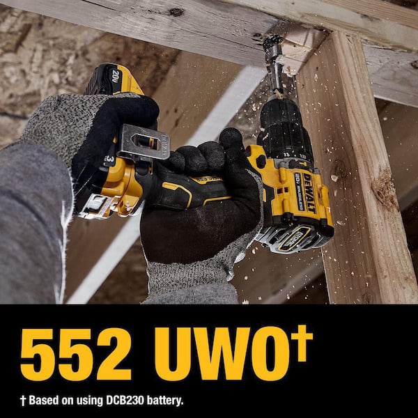 Unlock power in a compact size with the ATOMIC COMPACT SERIES 20V MAX 1/2 in. Hammer Drill. Get up to 552 UWO for a variety of masonry drilling applications in tight spaces with Our Shortest 20V MAX* Hammer Drill. The on-tool LED work light illuminates small spaces to optimize productivity on the job site.